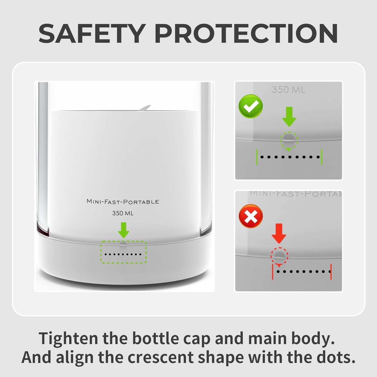 - Travel Lid: We equipped the mini blender with one more bottom cover , after juicing, the bottom motor can be removed and replaced with the travel lid. Then it is as easy to carry as a water bottle that can hold 350ml of juice and weighs only 460g. It is suitable for home, work, school or travel