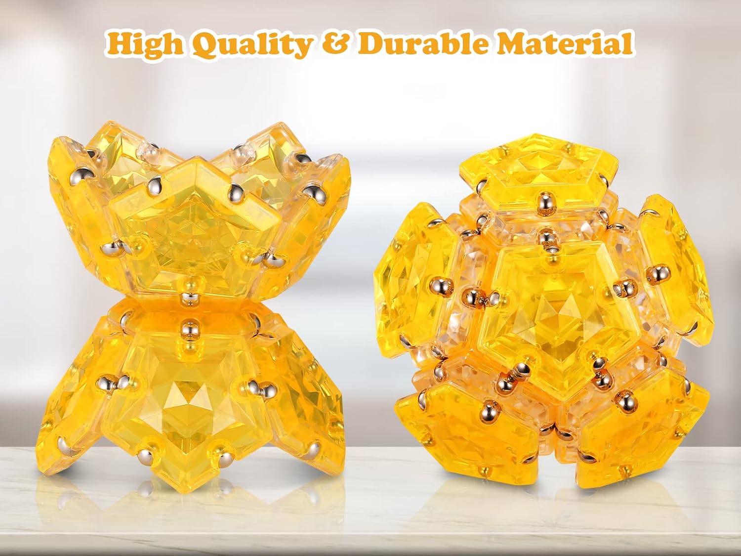 - [Develop Your Spatial Thinking]: Fold, shake, spin and stack the pieces. Connect the pentagonal plates together into sculpture-like forms. Click and clack the pieces around in a satisfying symphony of kaleidoscopic visuals. Flick your fingers like twisting tendrils as the magnetic ball transmogrifies your mind. Captivating 3D art!