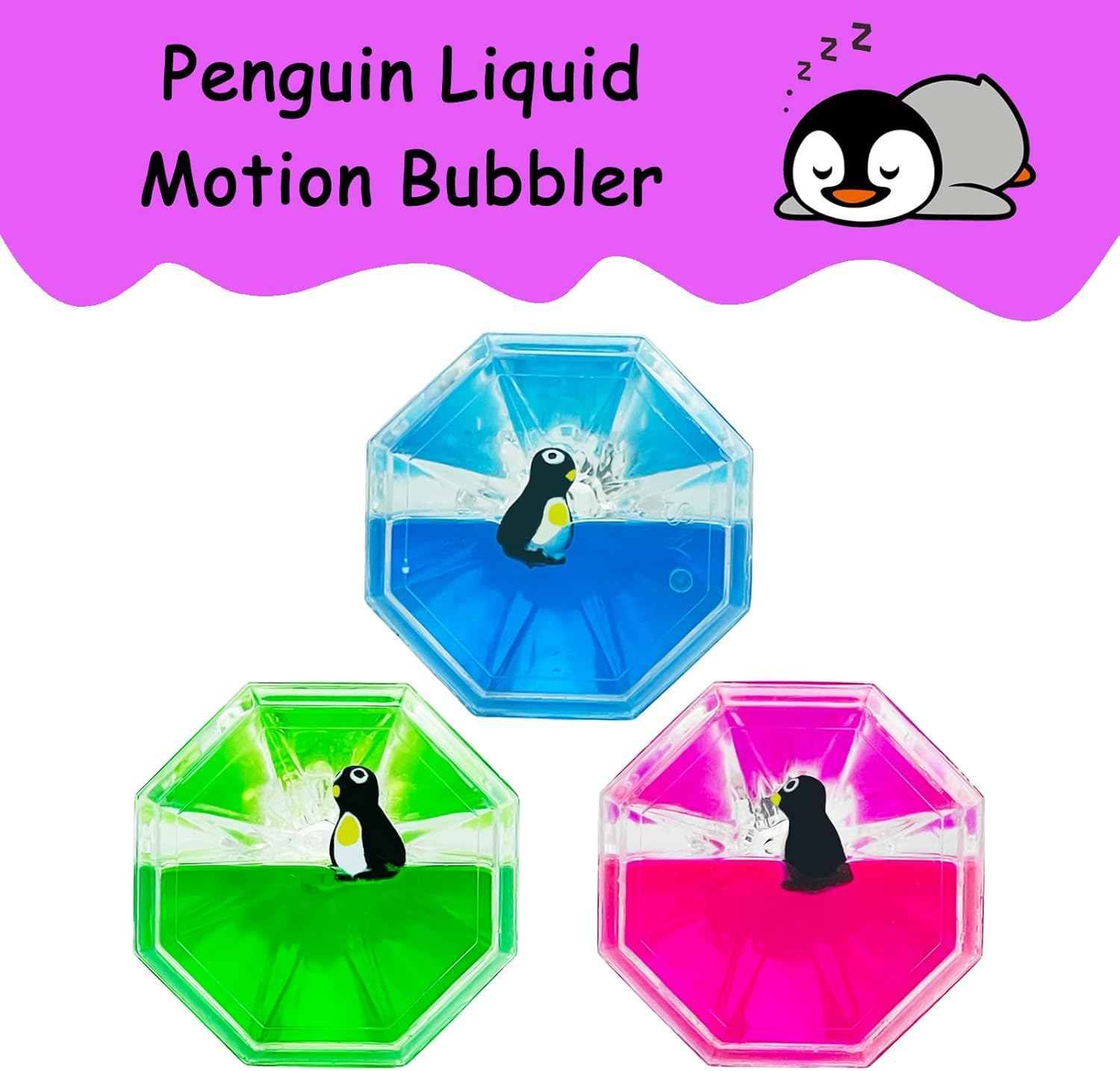 - FANTASTIC DESIGN:Double diamond shape design, and cute penguin swimming in liquid, motion bubbler toys feature beautiful, flowing colors that drop and move slowly, pushed along with time and gravity for a unique experience.