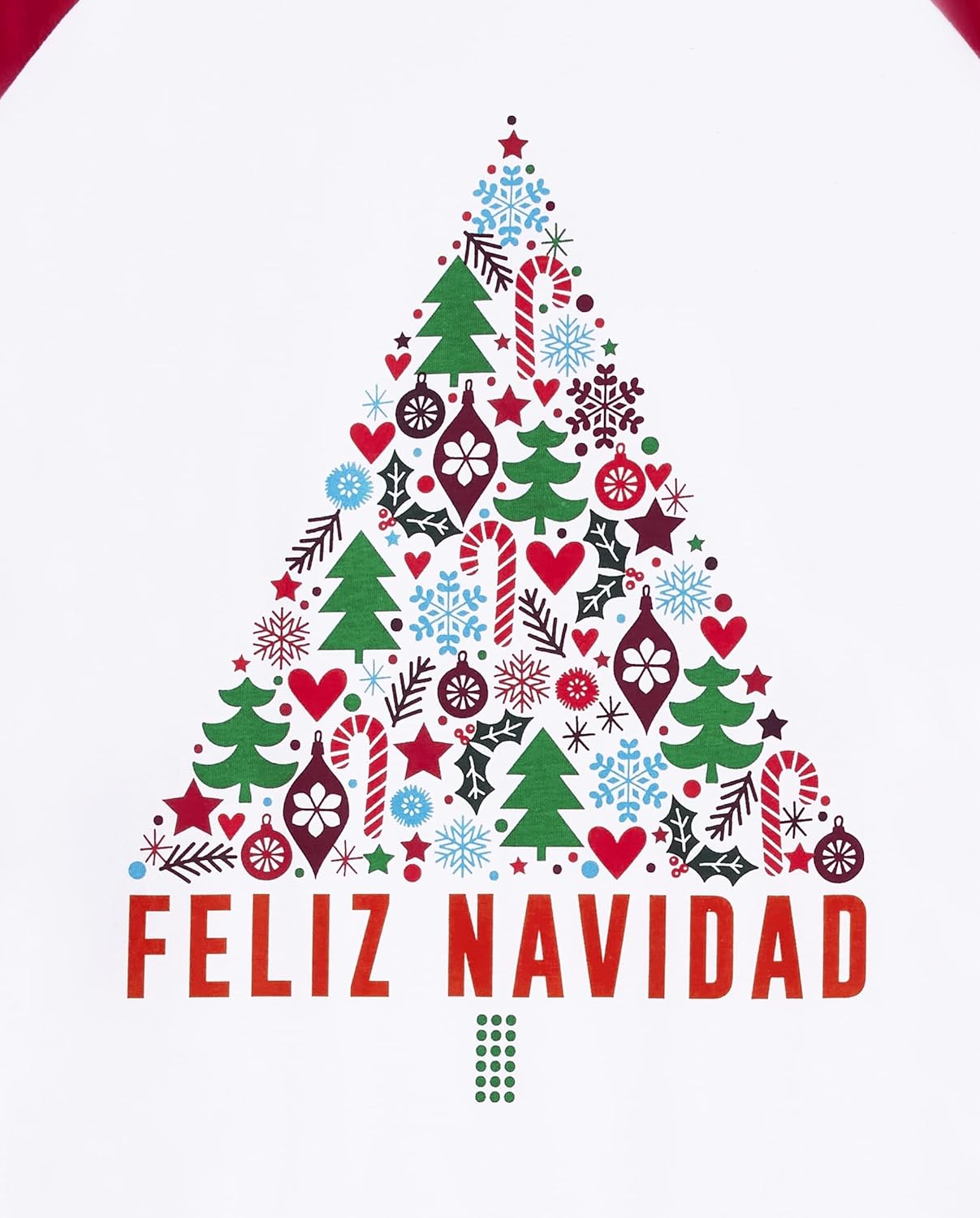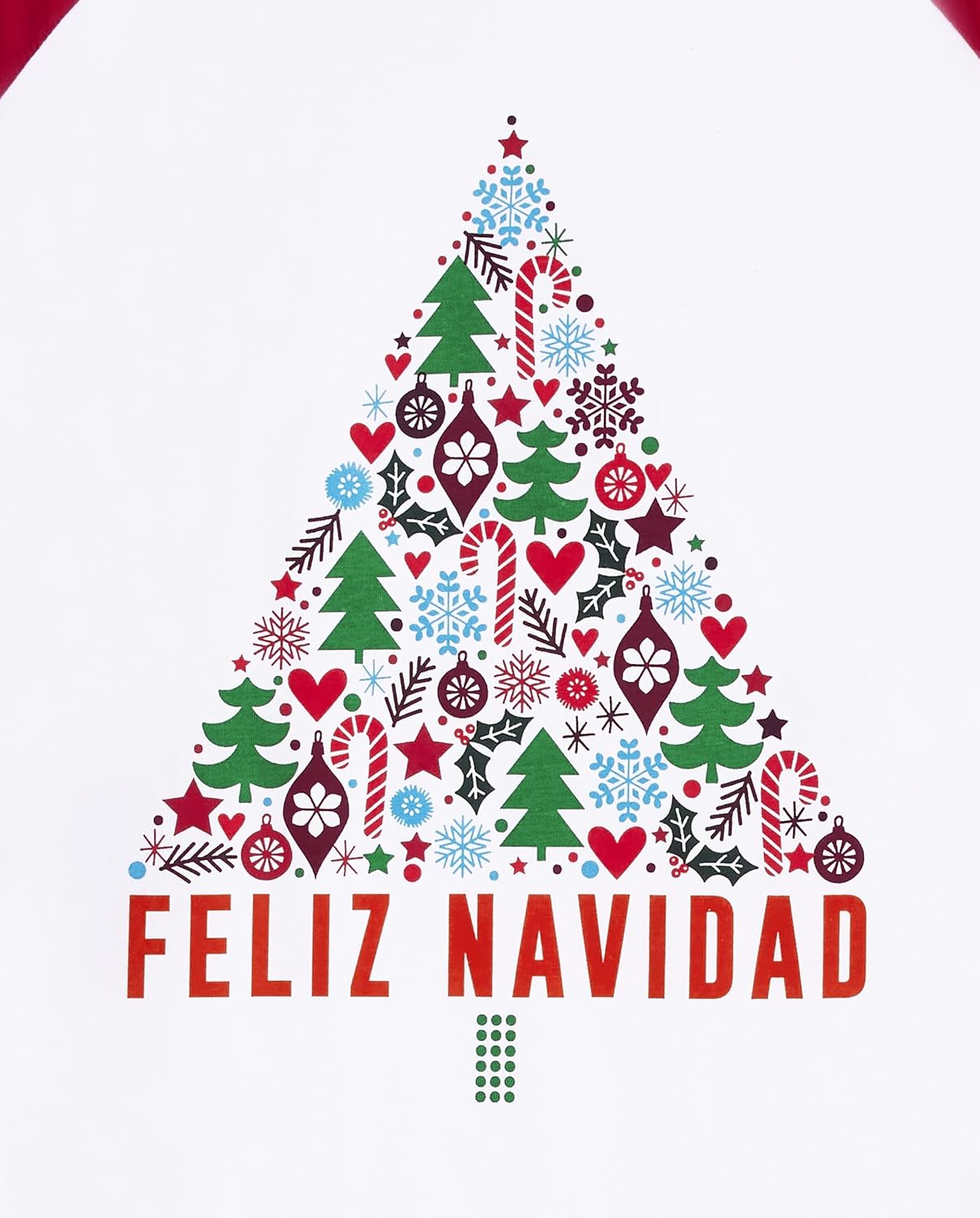 - PAJAMA TOP — Features long raglan sleeves, rib-knit crew neck and sleeve cuffs and 'Feliz Navidad 2022' with Christmas tree graphic design at front