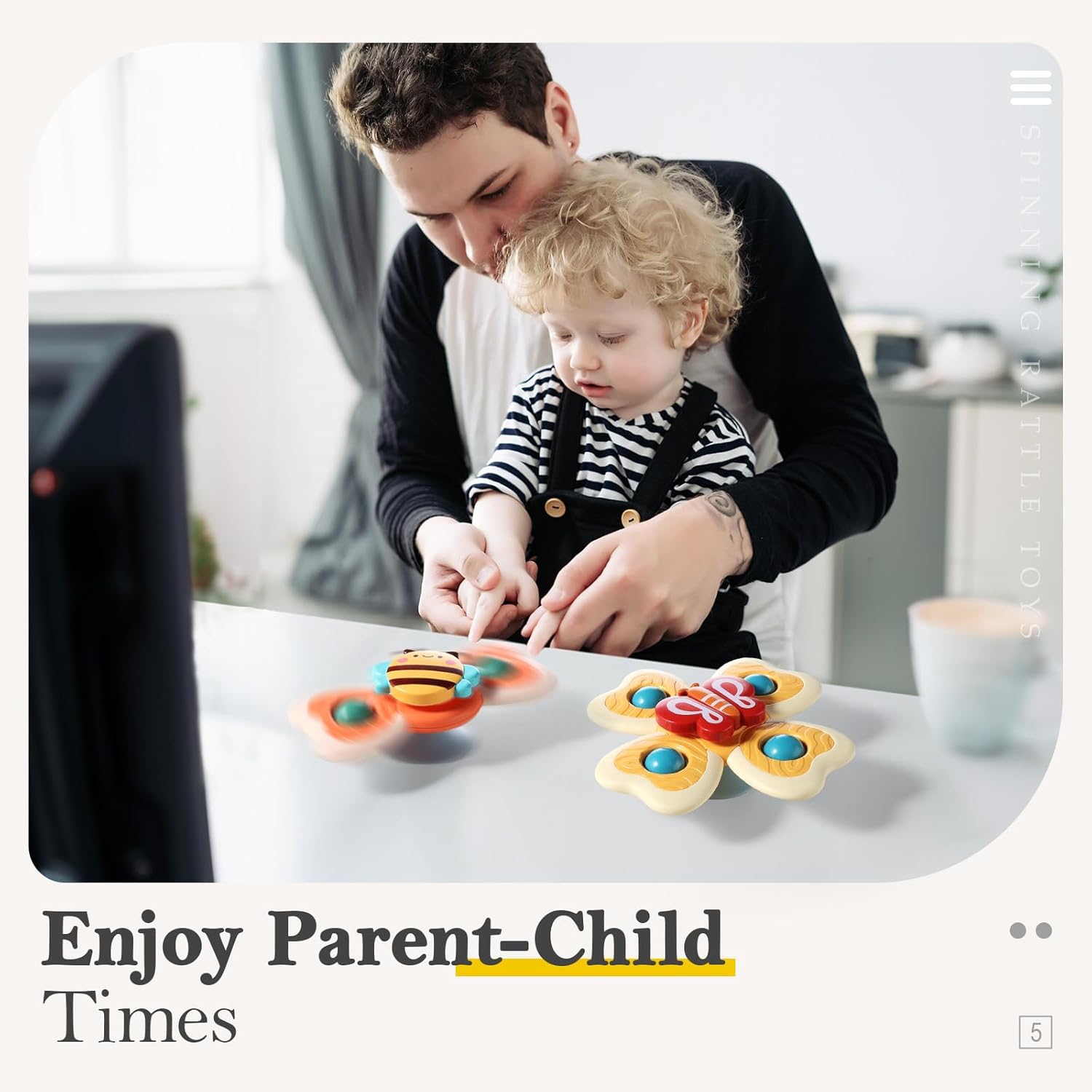 ALASOU 3PCS Suction Cup Spinner Toys for 1 Year Old Boy Girl|Spinning Tops Bath Toys for Kids Ages 1-3|Sensory Toys for Baby 6 12 18 Months Boy Birthday Gift