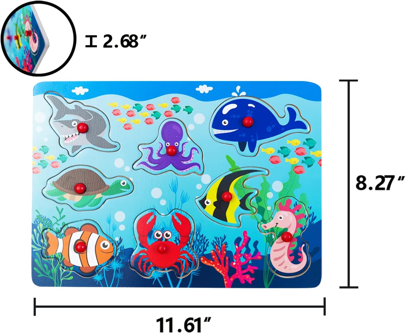 - ANIMALS KNOB PUZZLE: ExploraToy brings you the best wooden puzzles with the cutest illustrations and bright colors, this set includes farm forest animals, pets, and sea ocean animals, designed to be a super fun play-to-learn activity for kids!