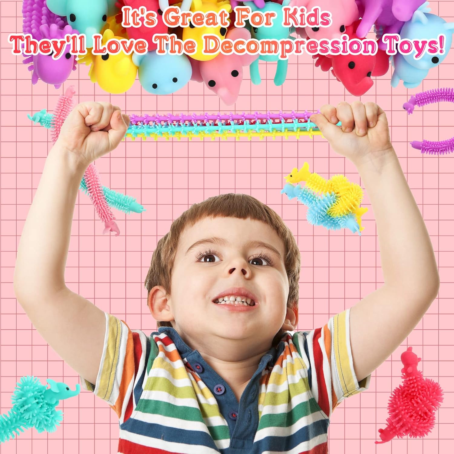 Chivao Bulk Stretchy String Fidget Toys Animal Sensory Toys Pack Worm Sensory Stress Fidget Toys for Adults Stress Anxiety Relieve Relaxing Party Favors