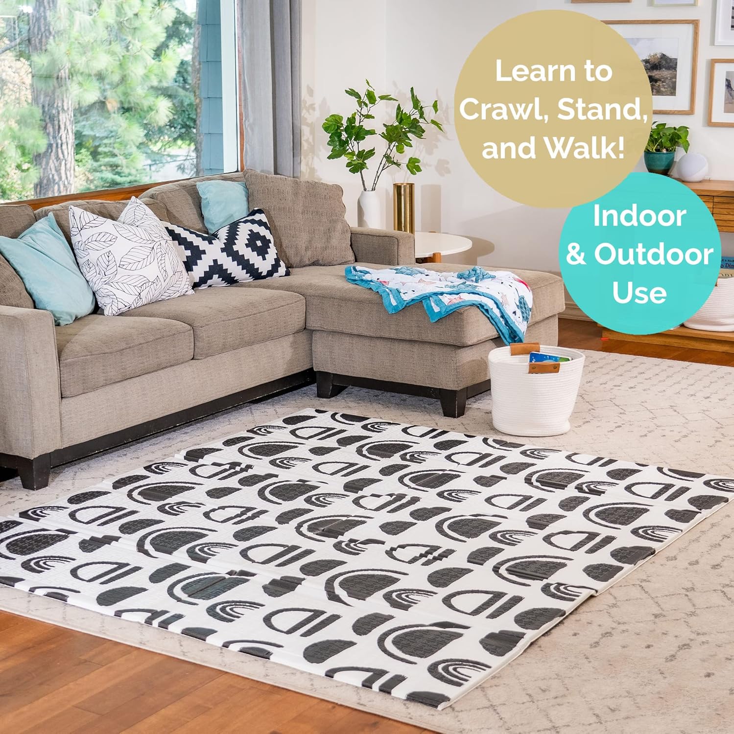 • Space To Play - This extra large baby play mat clocks in at 77 inches by 70 inches with a thick 0.6 in. padding, giving your little one plenty of space to crawl, play, or take a nap after they’re tuckered out