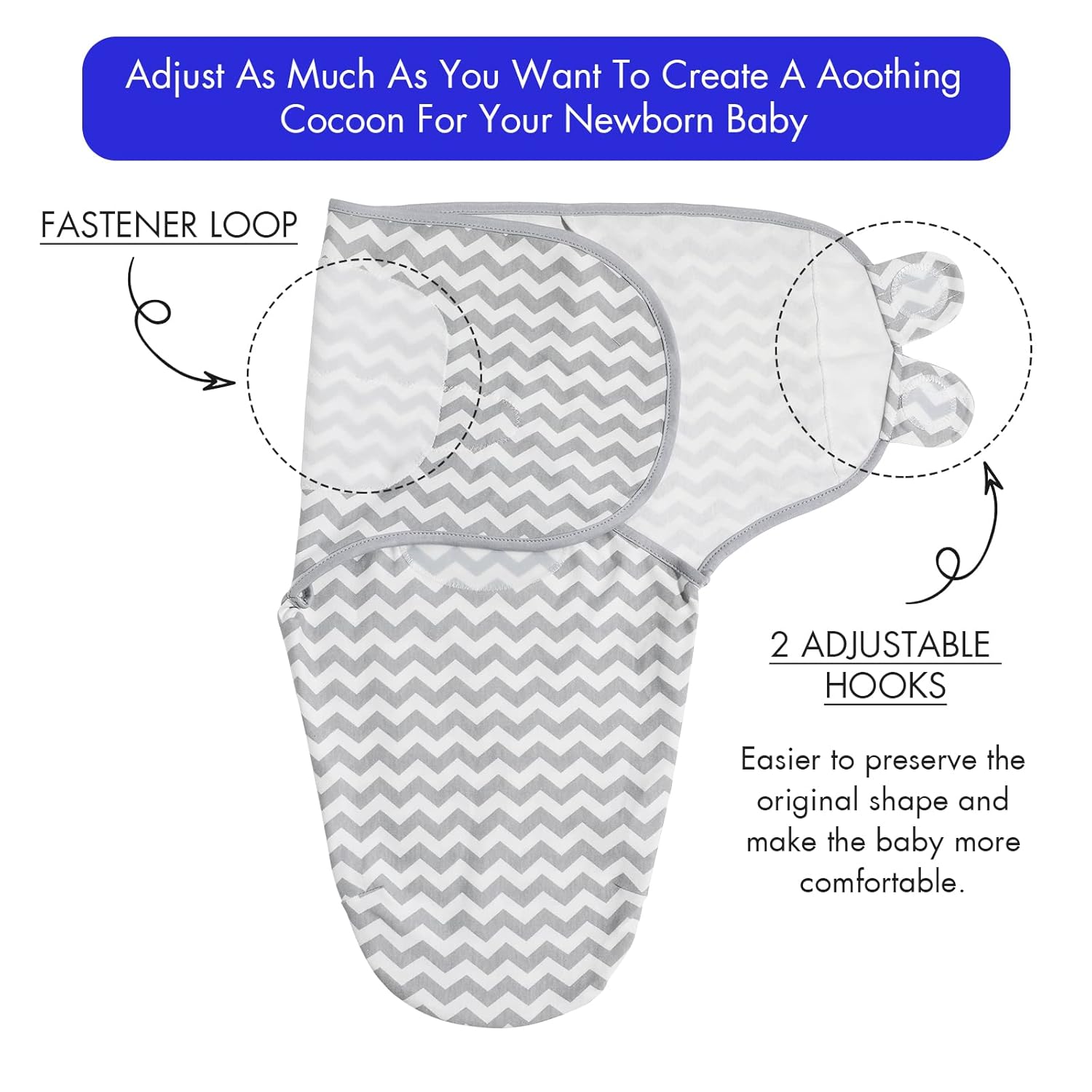- ADJUSTABLE FIT: Nursery swaddling blankets can secure and adjustable, baby swaddle wrap around baby for the perfect fit every time. You can adjust the tightness of the baby swaddle wrap with your baby's growth