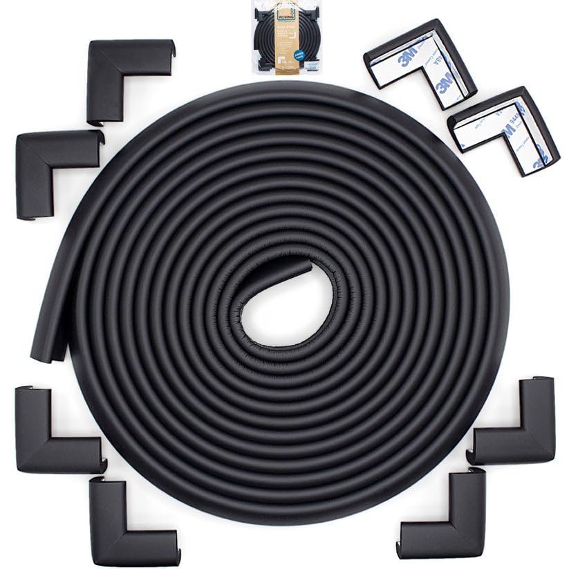 Roving Cove Slim-Fit Corner Edge Protector for Baby Proofing (Small 18ft Edge 8 Corners), Furniture Safety Bumper Guard, Soft NBR Rubber Foam, 3M Adhesive, Onyx Black