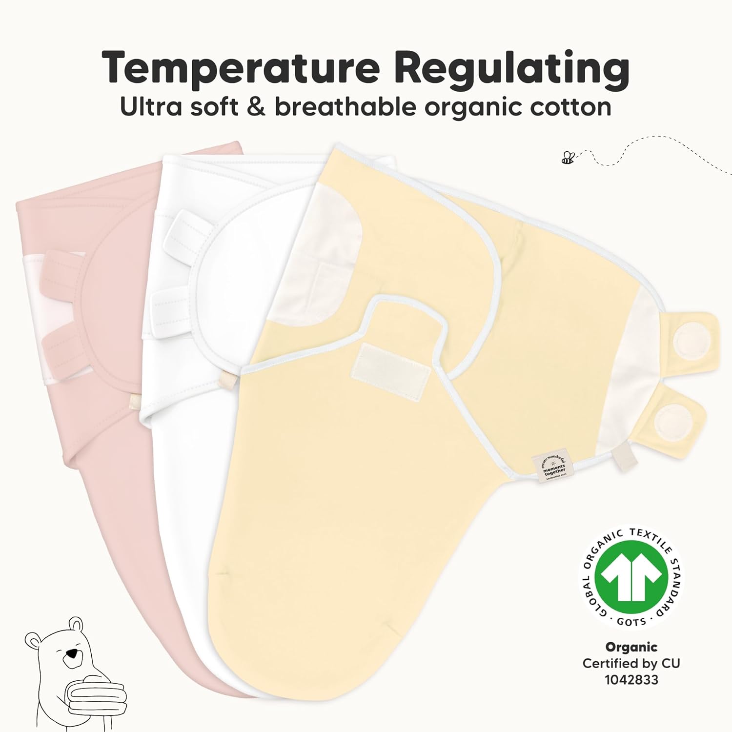 - Breathable & Temperature-regulating - Our Soothe Swaddle for newborns is made with ultra-soft Organic Cotton (GOTS Certified by CU 1042833), it is lightweight and highly breathable which makes it a highly-raved newborn swaddle sack for all seasons.