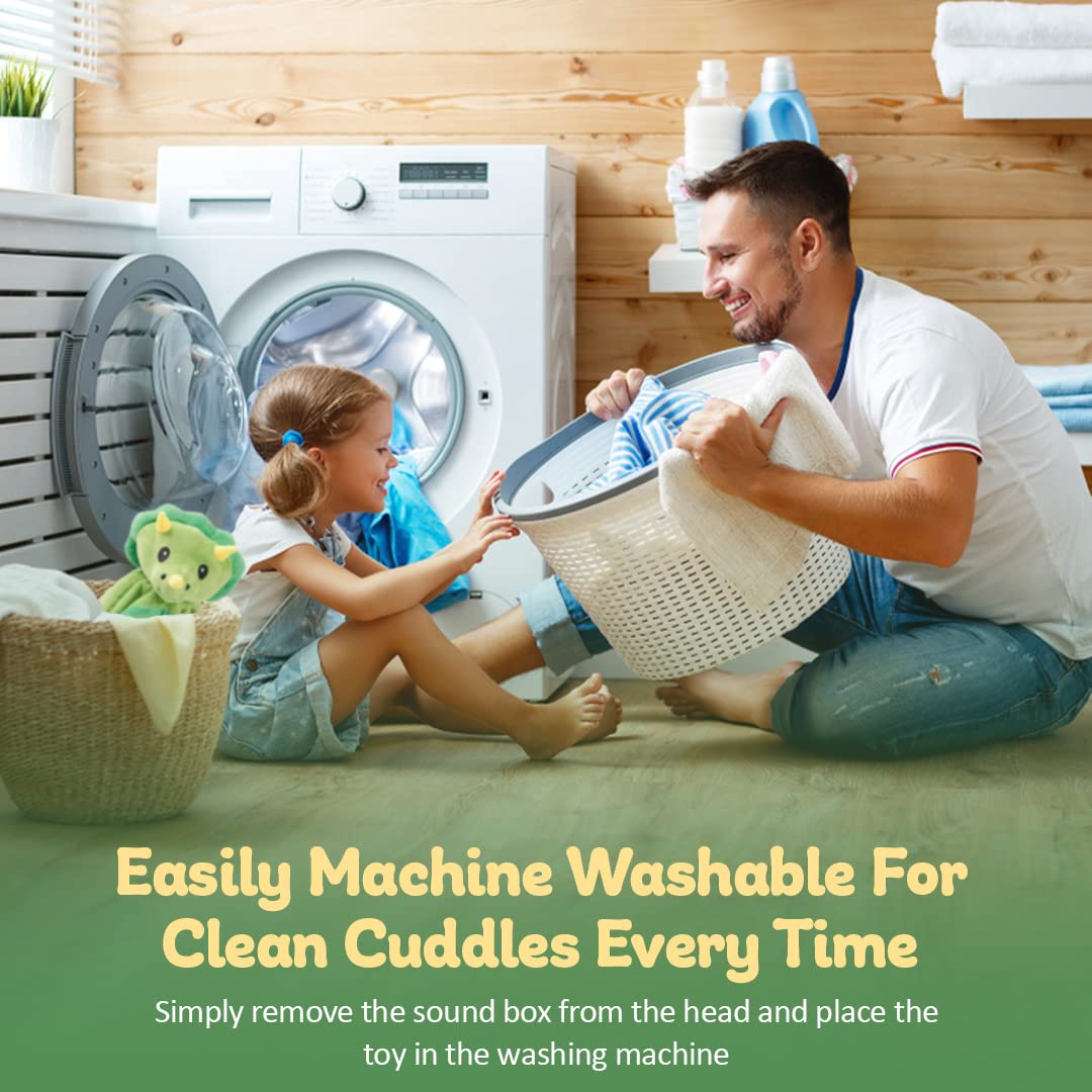 - ✅ BUILT WITH SAFETY IN MIND: This musical plush toy is not only built to last, but it's also designed with safety in mind. Each baby snuggle toy is allergy-friendly and BPA-free. To clean it, remove the sound box from the head and place the toy in the washing machine. We recommend to wait until your child is at least a year old before allowing it to join naptime or bedtime.