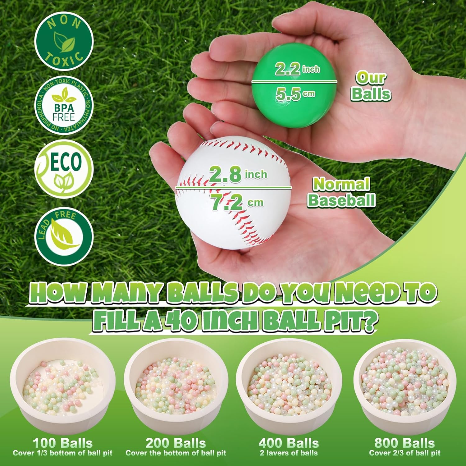 GOGOSO Ball Pit Balls for Toddlers, Green Balls for Ball Pool Birhtday Party Girls Kids with Storage Bag, 2.17inches