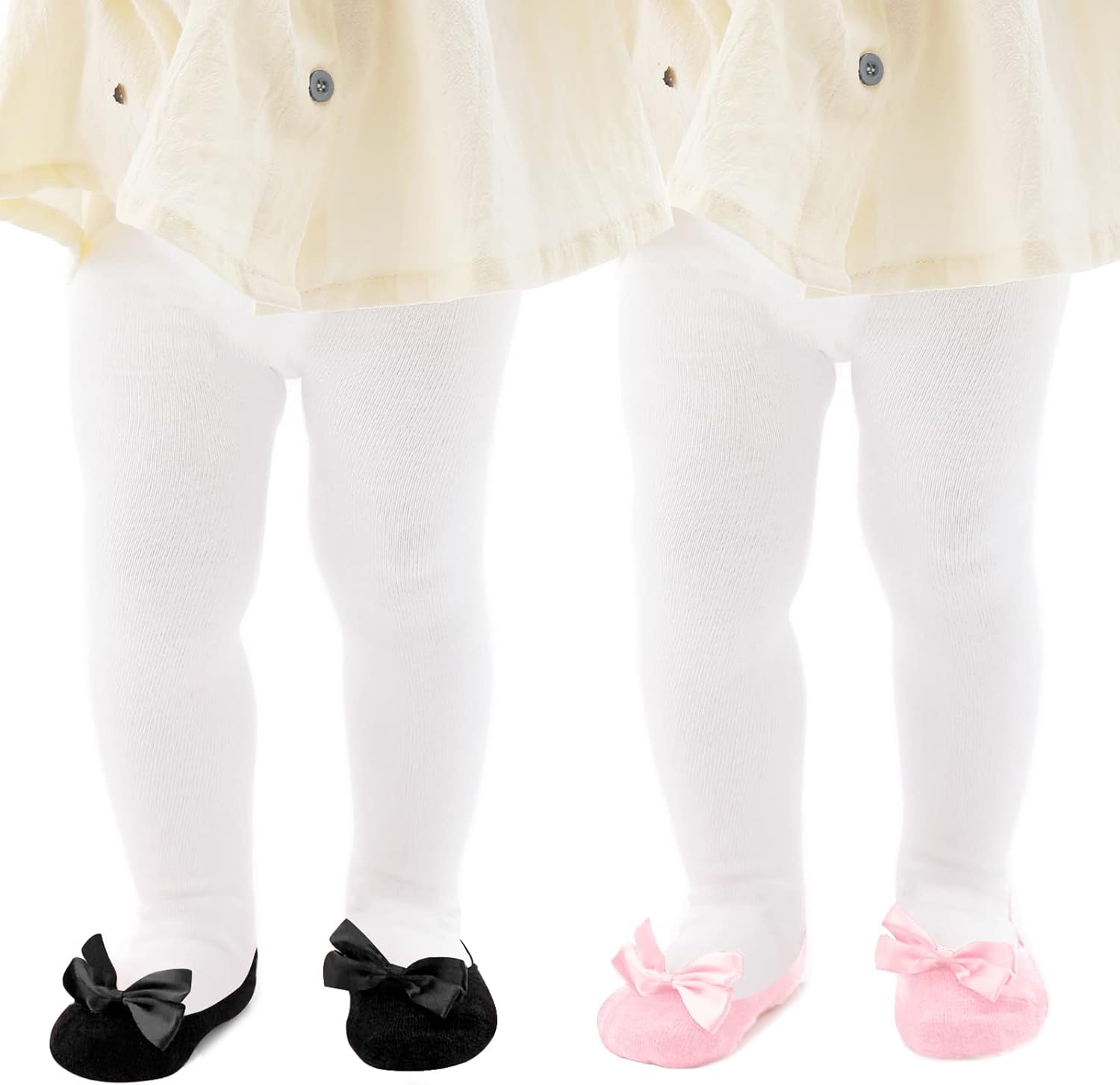 - Shoe-Look Design: The baby girl tights will make your little one looks more adorable with the shoe-look design and the bow around the toes. Also great for kids who hate shoes, you couldn't tell from the pictures that they were socks.