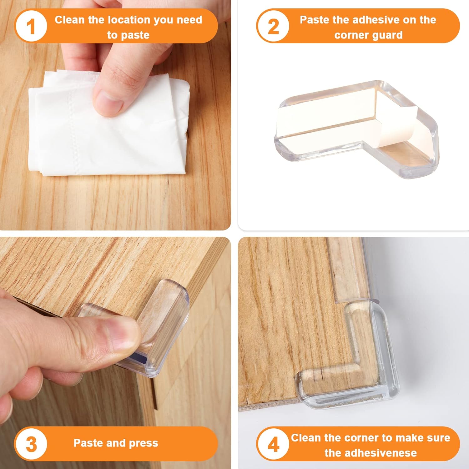 - 🌳【Widely Use】Our baby proofing corner guards is not a fixed angle, you can adjust it to any angle to meet your needs. It can be well pasted on a Wood, Glass, Metal, Marble, PVC, Tiles, Stone, Cement and so on