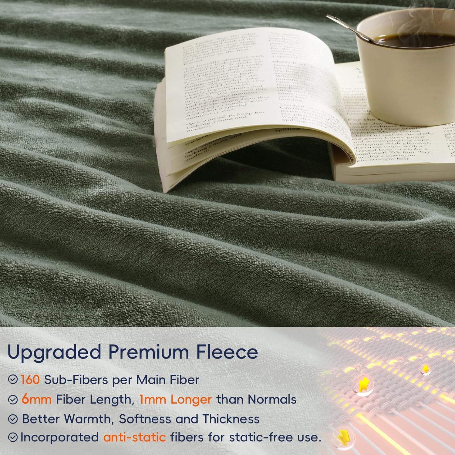 PHF Ultra Soft Fleece Throw Blanket, No Shed No Pilling Luxury Plush Cozy 300GSM Lightweight Blanket for Bed, Couch, Chair, Sofa Suitable for All Season, 50" x 60", Olive Green