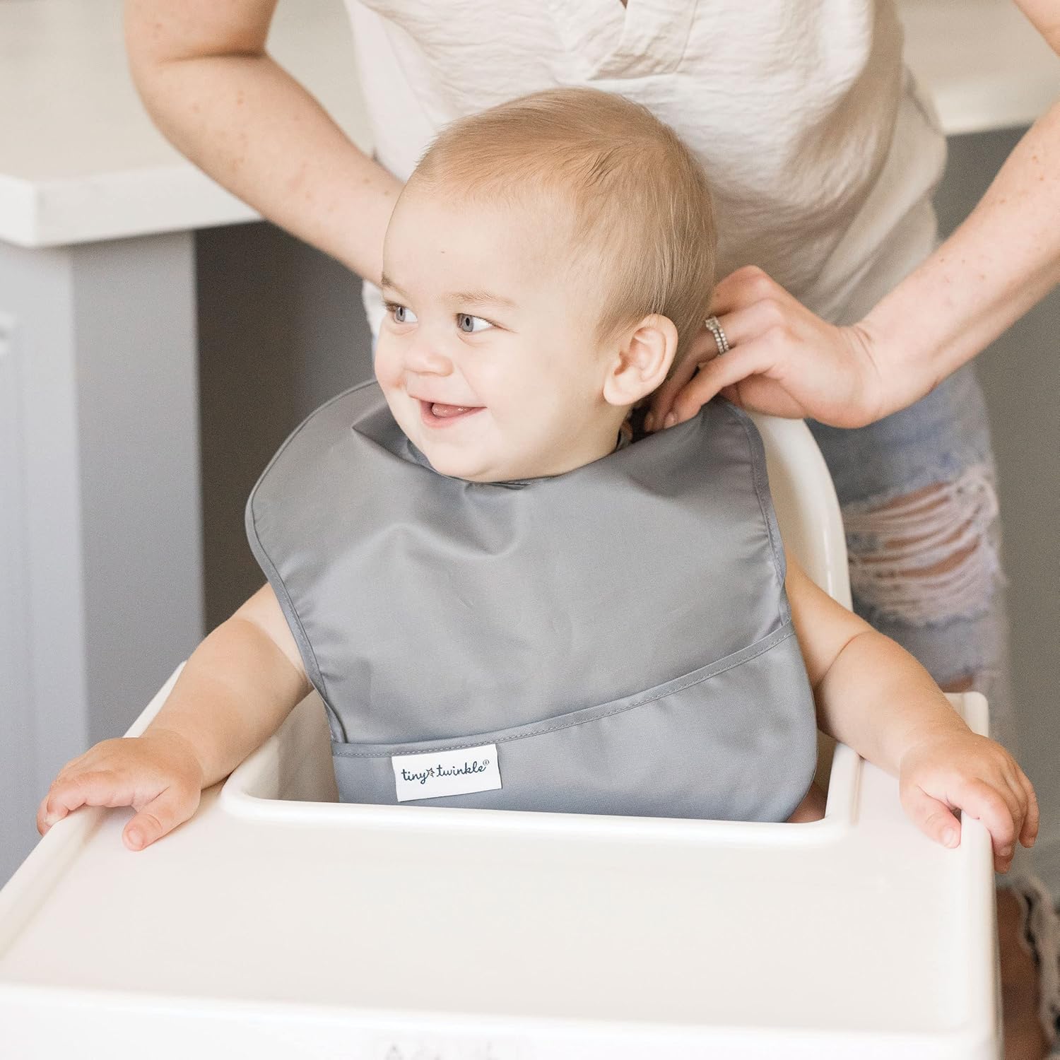 - BABY ESSENTIALS MUST HAVES: Tiny Twinkle presents essential baby feeding supplies with our baby feeding bibs.Crafted from soft,lightweight,water-repellent recycled polyester,these waterproof bibs for baby boy or girl are designed to keep messes at bay.Our baby food bibs feature a catch-all pocket to capture spills,ensuring your little one stays clean during mealtime.