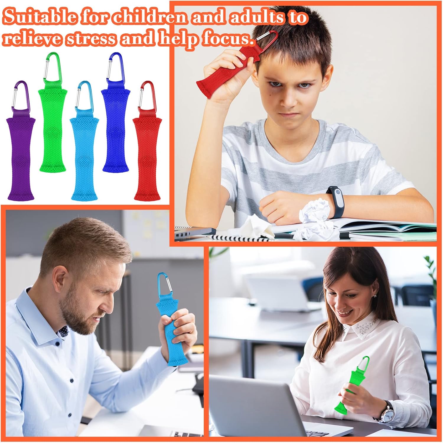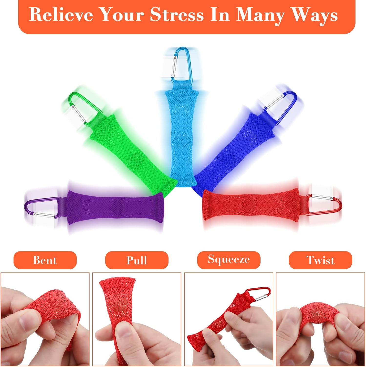 - Detailed Sizes and Colors: the fidgets are about 3.9 x 1 inches/ 10 x 2.5 cm (without buckle), featuring red, dark blue, purple, green and sky blue, each includes a corresponding color buckle for clipping gadgets to backpacks and belt loops