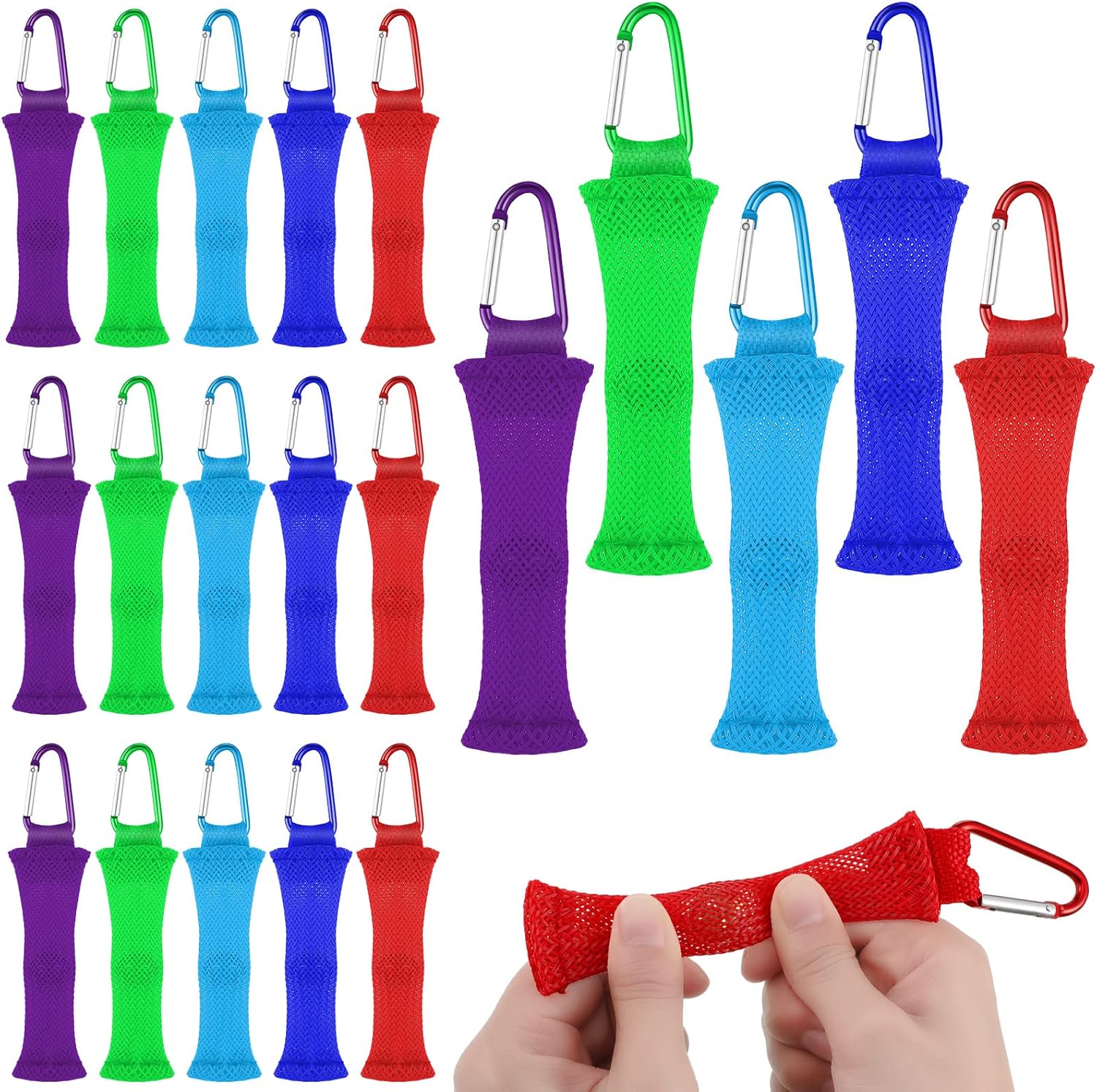 Kathfly 20 Pieces Fidget Marble Mesh Fidget Toy with Buckle Colorful Fidgets Sensory Marble Fidget for Stress Relieve Adults Office, 5 Colors