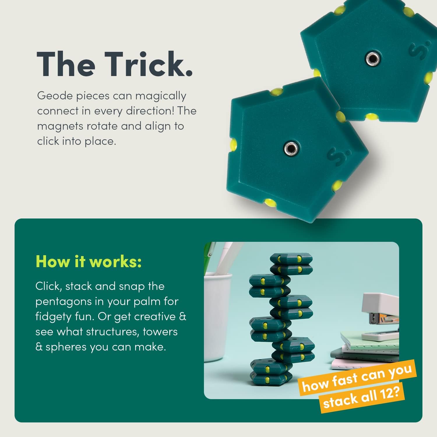 - FUN FRUSTRATION FREE FIDGET: Fidget to find your favorite configuration! Geode pieces connect on every side so you’ll always find a connection. Easy to use, harder to master - you’ll be playing with these pentagons permanently! Way more fidgeting fun than a fidget spinner, trust us!