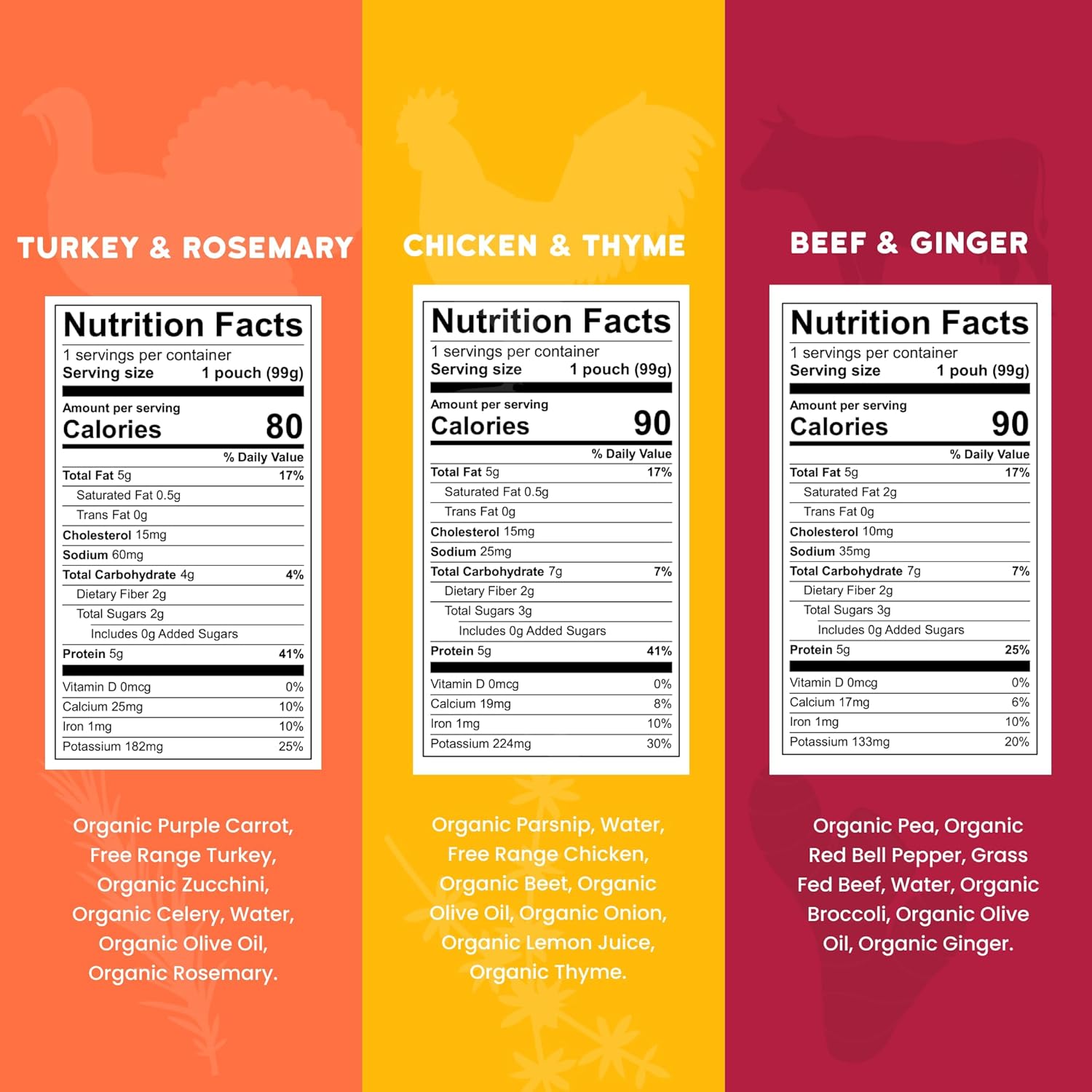 - THOUGHTFULLY CRAFTED: Each baby puree pouch mirrors breast milk's macronutrients. We use ethically sourced meats and organic veggies without artificial stuff, keeping our mission of pure baby foods