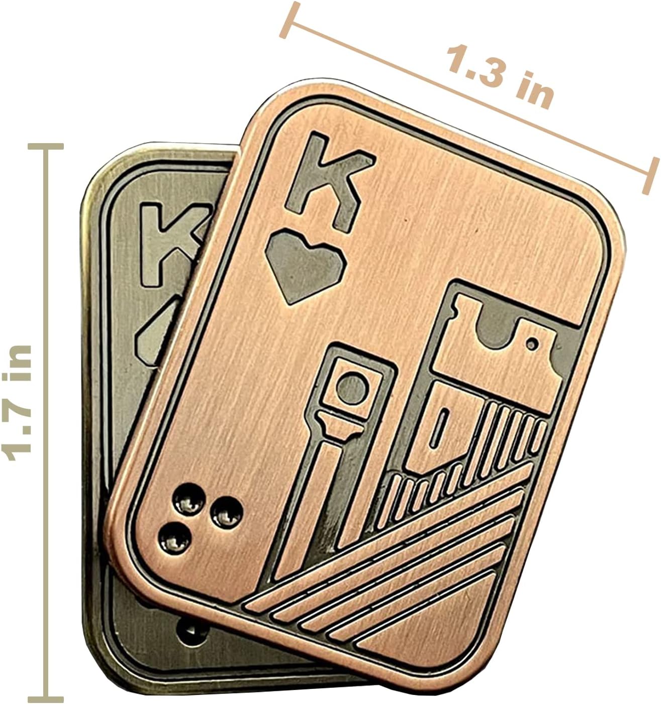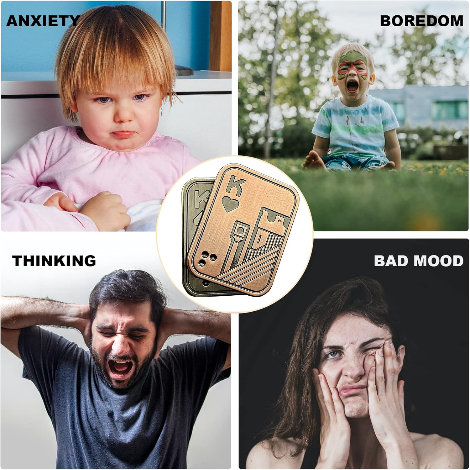 - Excellent metal technology - Poker fidget slider is completely made of stainless steel. The front and back of the slider are exquisitely carved with skeleton and king of poker K. The metal color is treated by the electroplating process, so the color of the upper metal body is copper, and the color of the lower metal body is brass. Every detail of the slider is precision processed, and the surface treatment is exquisite and smooth, making it more comfortable to use.