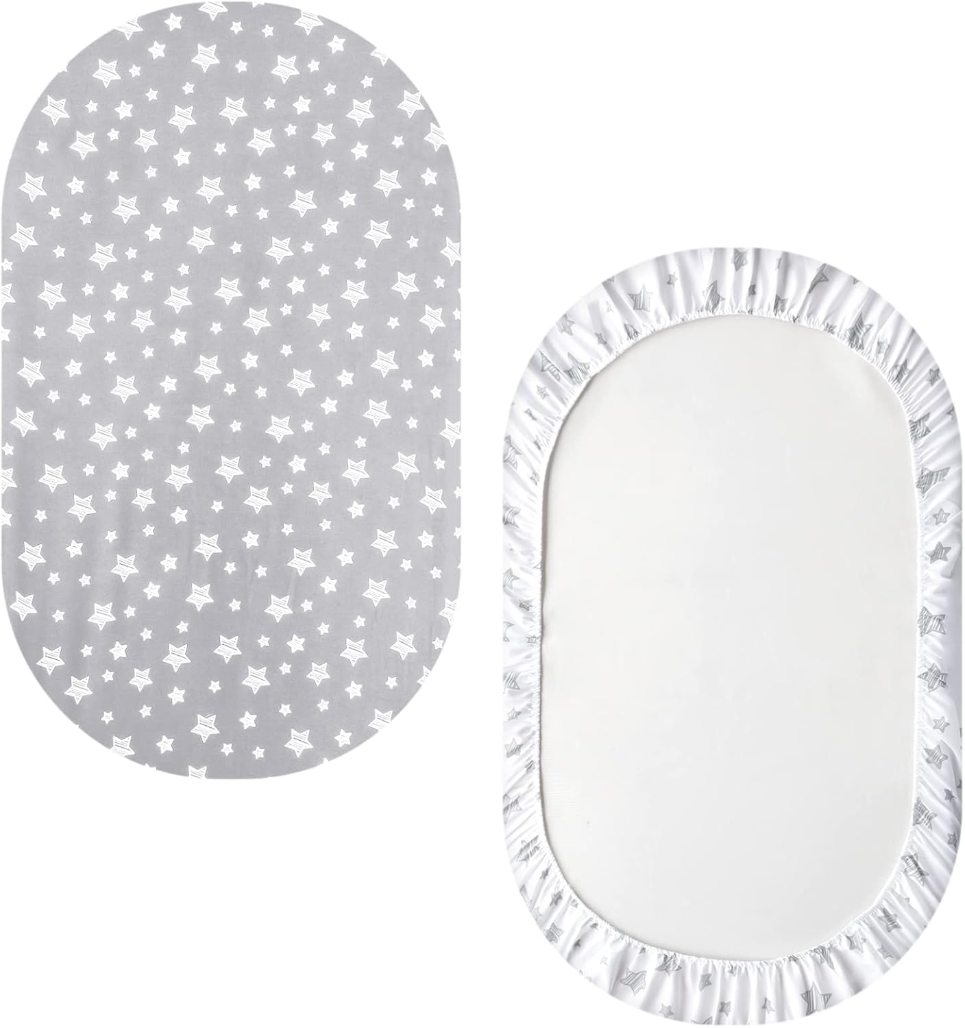Bassinet Sheets Set 4 Pack for Baby Boy or Girl, Universal Fit for Oval, Hourglass and Rectangular Mattress, Grey
