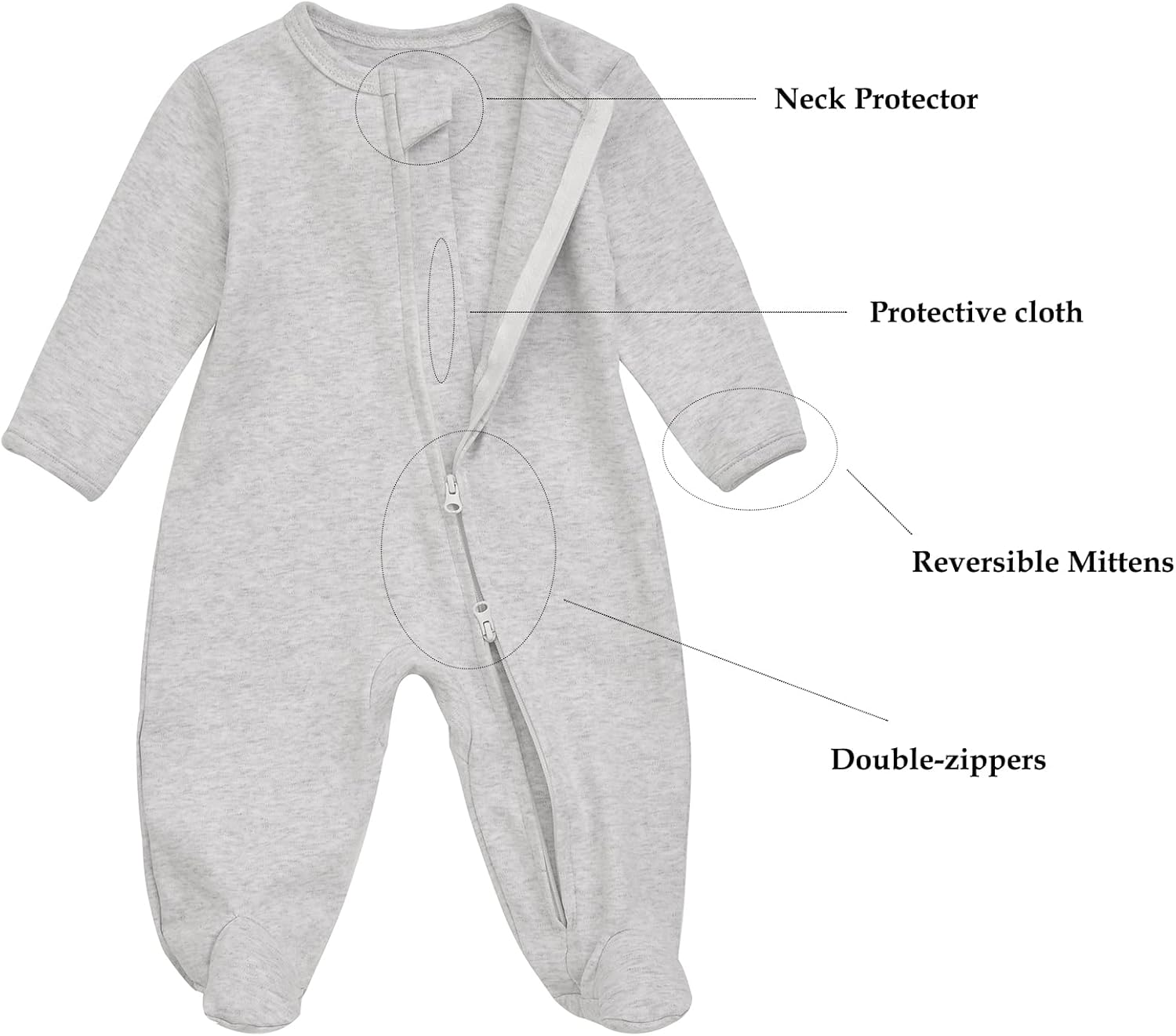 - 【2-Way Zippers】Our baby clothes are ankle-to-chin Full-zip closures for easy dressing and diaper changes. Front zippers with safety tabs to protect chin and skin