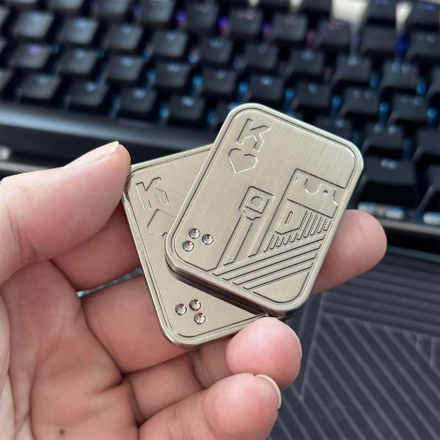 - Excellent Metal Work - The Poker Fidget Slider is entirely made of metal, it's not particularly heavy, but it will carry some weight in your hand, which will make it feel better in your hand. The front and back of the slider are each engraved with beautiful poker-style graphics. Every detail of the fidget slider is precisely machined, and the color of the metal is processed through a special process to make the surface more delicate and smooth, making it more comfortable to hold.