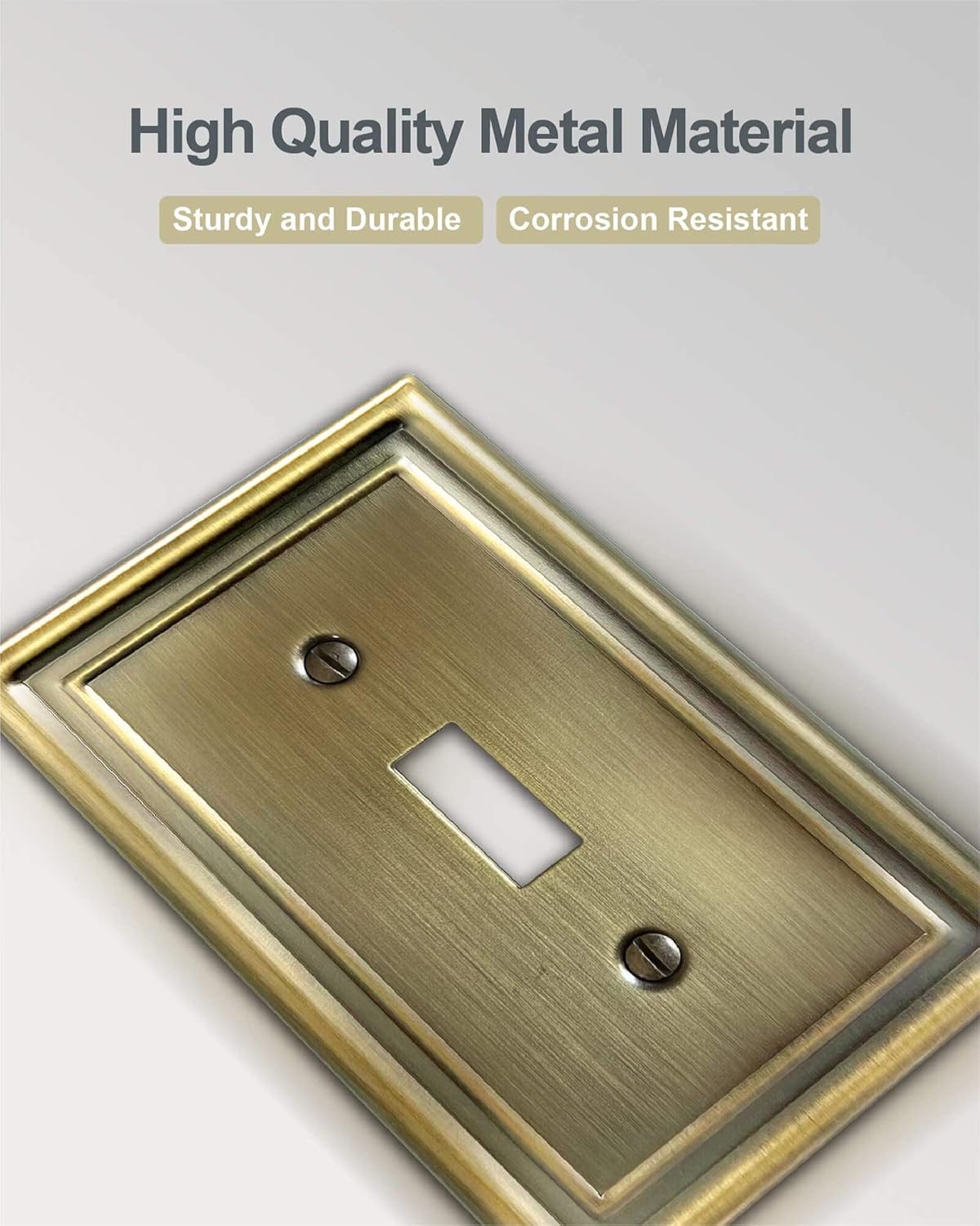Antique Brass Light Switch Cover, Single Toggle Switch Plate Cover, Durable Metal Wall Plate, 3.15''*4.88'', Midsize, 4 Pack