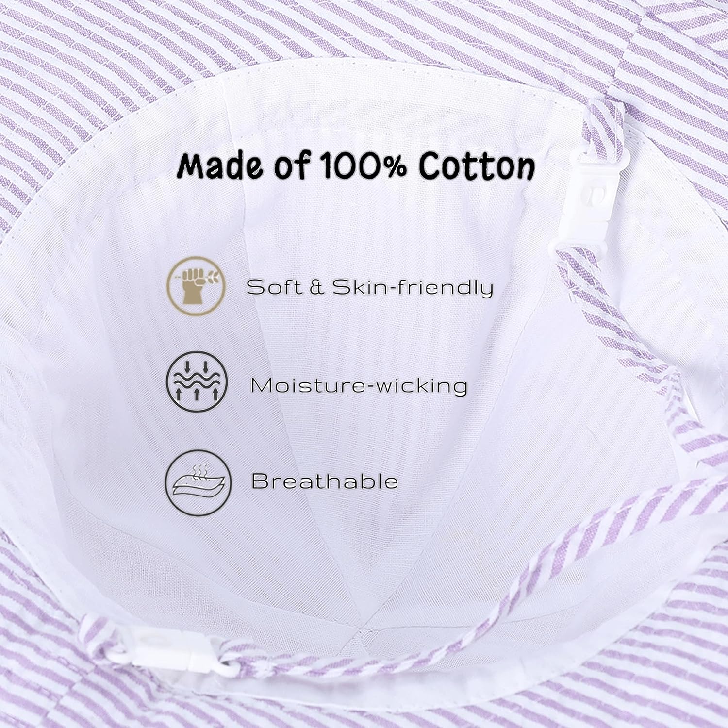 Baby & Toddler Wide Brim Sun Hats UPF 50+ Sun Protection Bucket Cap Cute Adjustable Hat in Seersucker