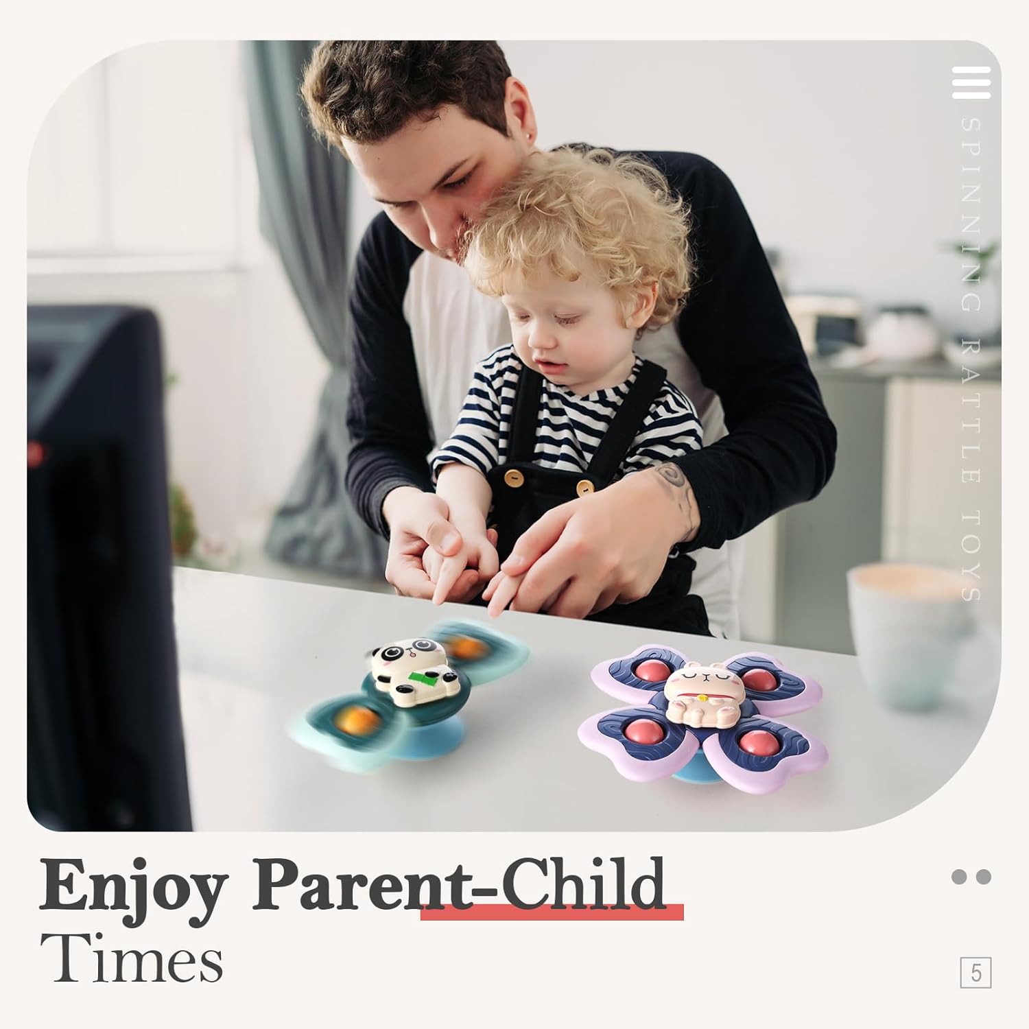 ALASOU 3PCS Suction Cup Spinner Toys for 1 Year Old Boy Girl|Spinning Tops Bath Toys for Kids Ages 1-3|Sensory Toys for Baby 6 12 18 Months Boy Birthday Gift