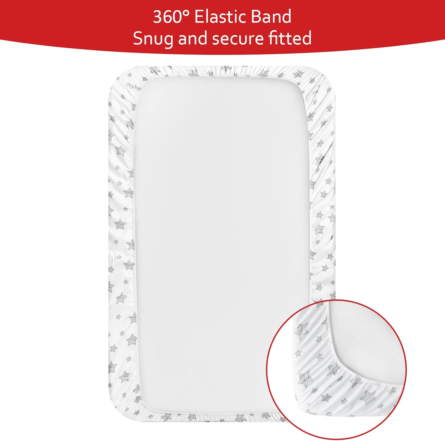 - Snug Fit with Standard Size: The 4 pack mini crib sheets fits perfectly on most standard mini crib mattresses, dimensions 38"X24". Our mini crib sheets have an elastic band around the entire edge, a feature that makes the Sheet safer for babies.