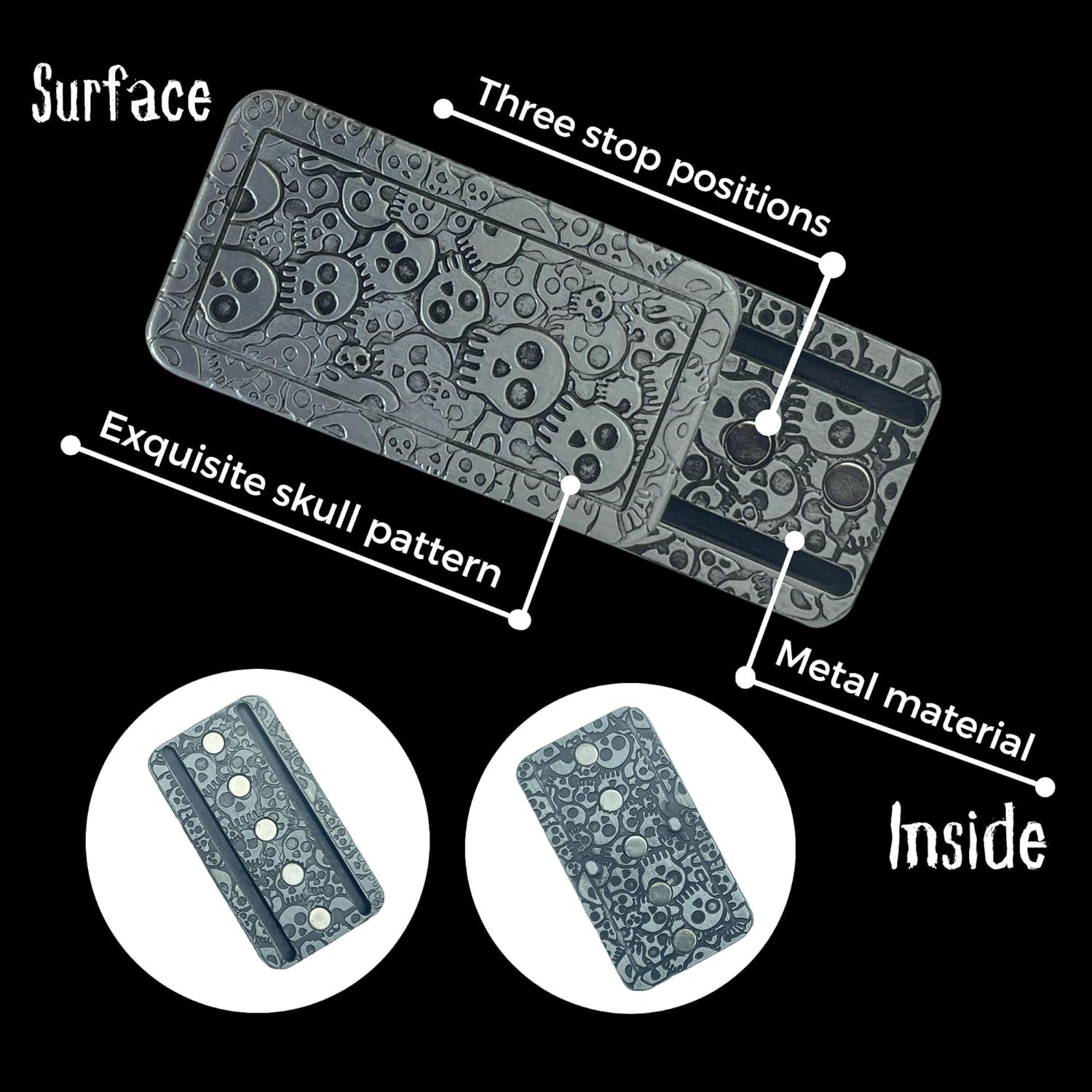 - 【High Quality Material】 This Fidget Slider is entirely made of high-quality metal. It has heavy metal texture, which is nice to hold. The front and back of the slider are engraved with a lot of small pattern. The surface of the slider is electroplated, not easy to rust, discolored and corroded. Each detail is precisely machined to make it more comfortable to hold. The small magnet block between two sliders is tightly connected, which is smooth to slide.