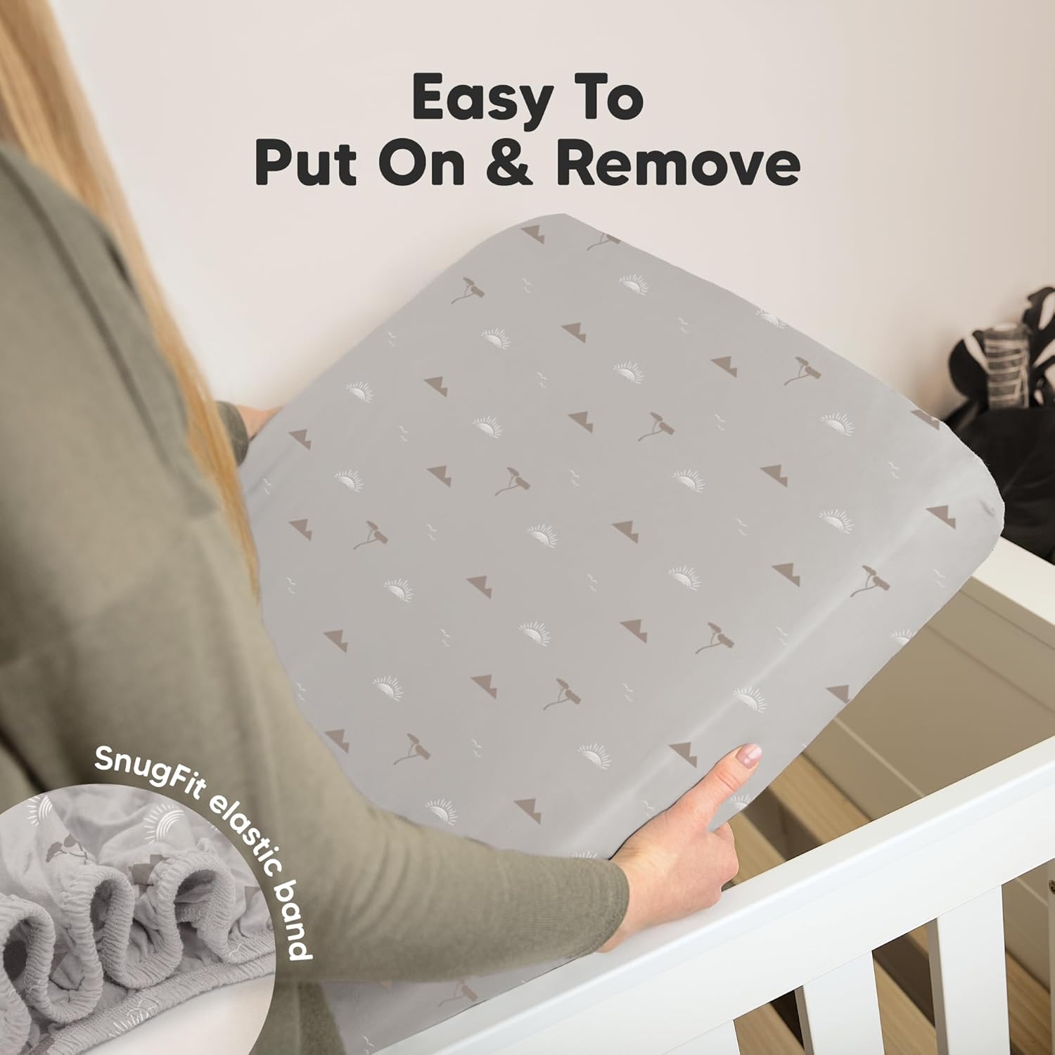 - High Quality Elastic Band - Our organic cotton crib sheets, use premium elastic SnugFit Band seamlessly concealed to ensure these standard crib sheets stay in place securely for safe and soothing sleep.