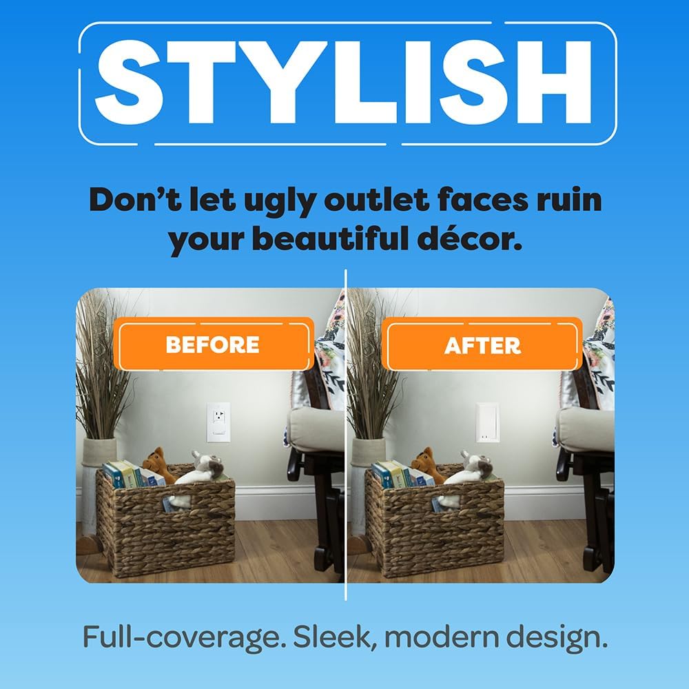 - EASY TO INSTALL – Using a flathead screwdriver, quickly remove existing wall plate and replace with Socket Shield. For use with single-screw, standard style electrical outlets (single gang). Screws are included. Each cover measures 3 3/8 inches wide X 5 3/4 inches high.