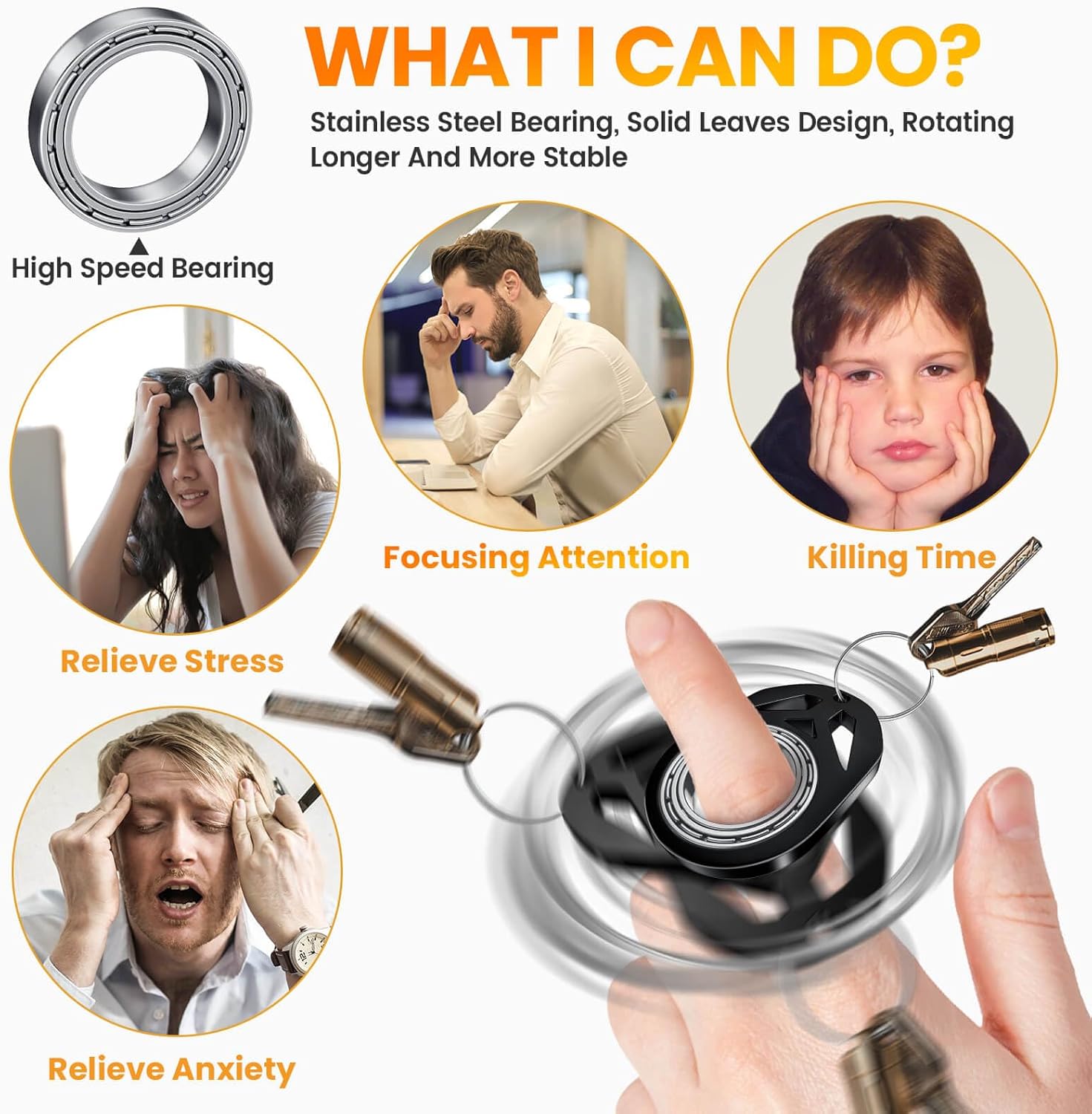 - ߷ ANTI-ANXIETY & PASS TIME - Our fidget keychain design to giving you an outlet to get rid of your fidgeting and anxiety; helps to alleviate stress and nervous energy; create a quiet peace moment whenever you need it; effectively help you to stay focused or relaxed when you get bored or under pressure.