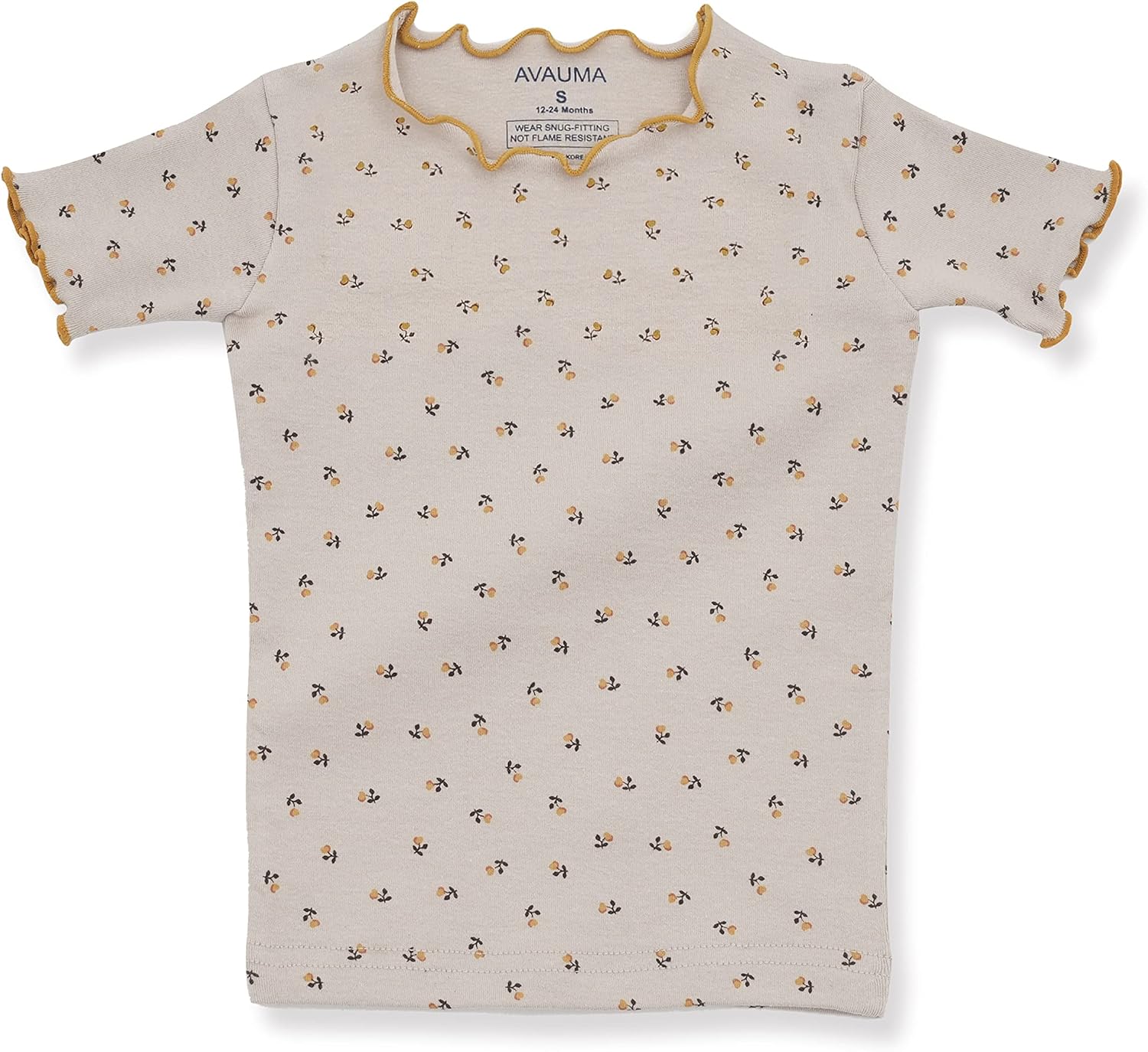 AVAUMA Baby Boy Girl Pajama Set 6M-7T Kids Cute Toddler Snug fit Flower Pattern Design Pjs Cotton Sleepwear Ruffled Shirring