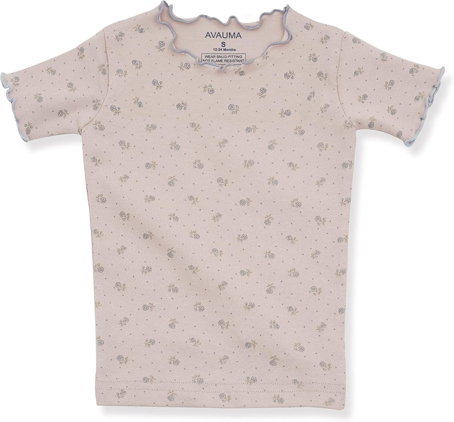 AVAUMA Baby Boy Girl Pajama Set 6M-7T Kids Cute Toddler Snug fit Flower Pattern Design Pjs Cotton Sleepwear Ruffled Shirring