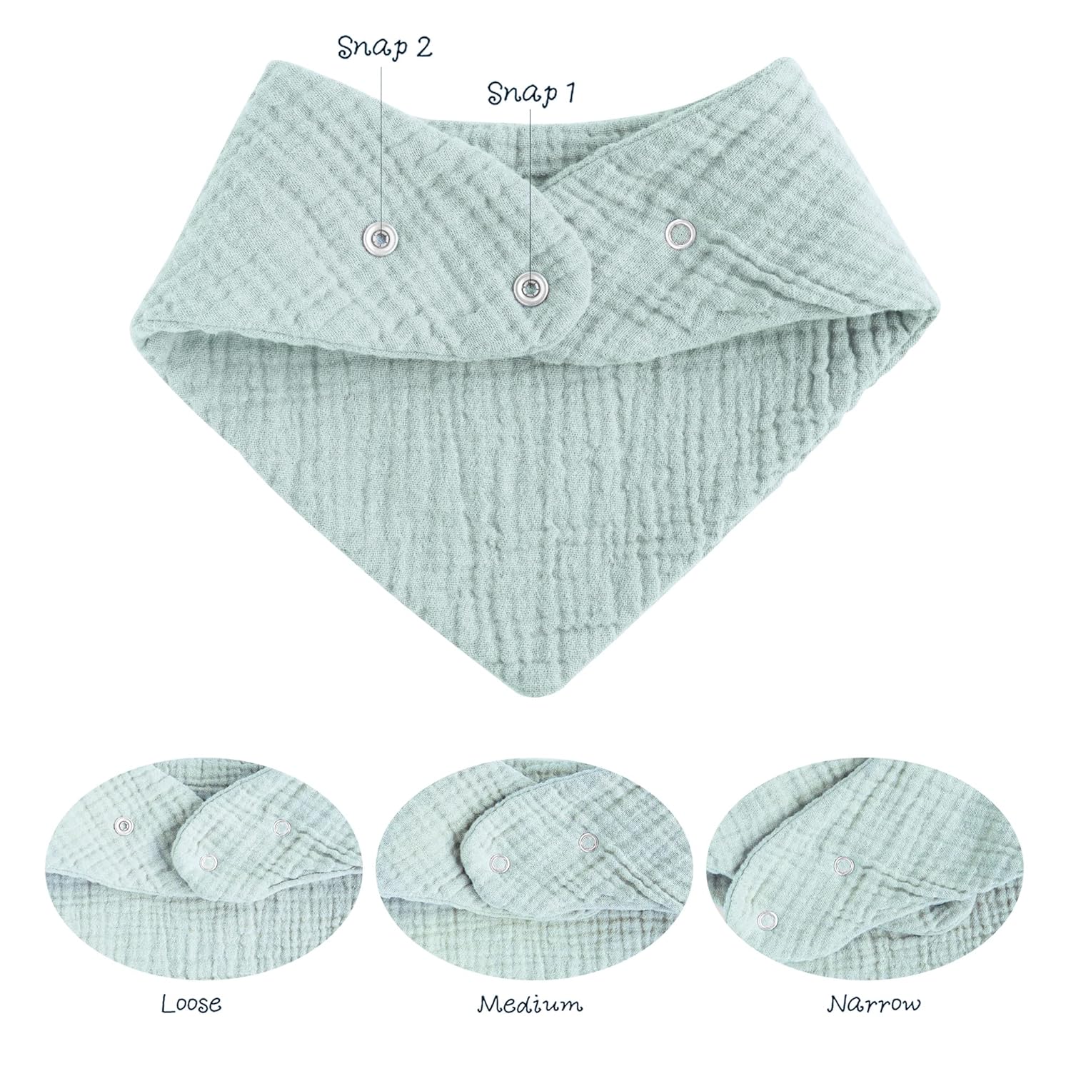 - Soft and Super Absorbent: These bandana bibs are made of 100% cotton (Muslin) for maximum absorption with skin-friendly soft touch. The bib soaks up all drools and spits to keep you and your baby clean and dry, no more wet clothes