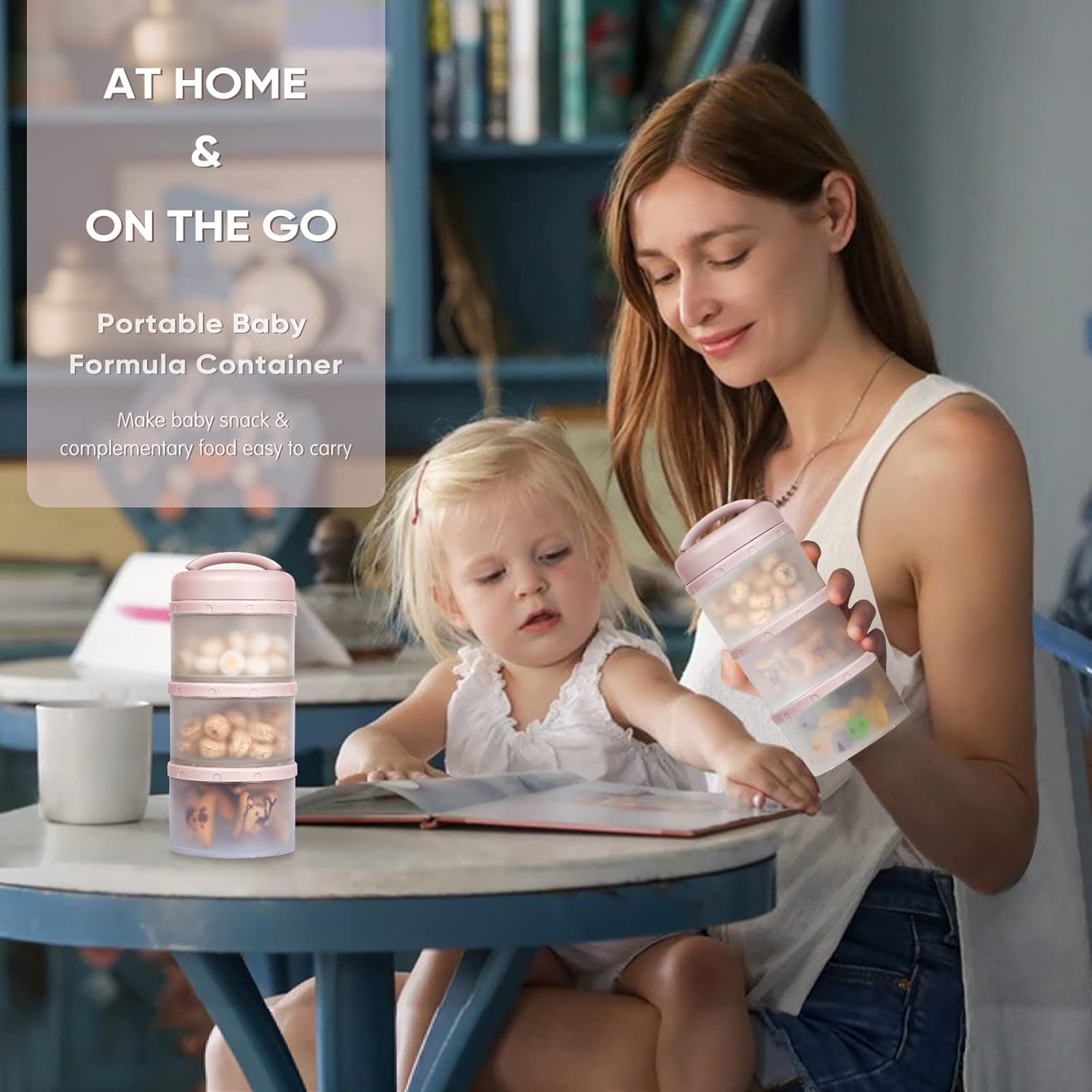 Termichy Stackable Formula Dispenser Portable Milk Powder Container, 2 Pack, Light Pink