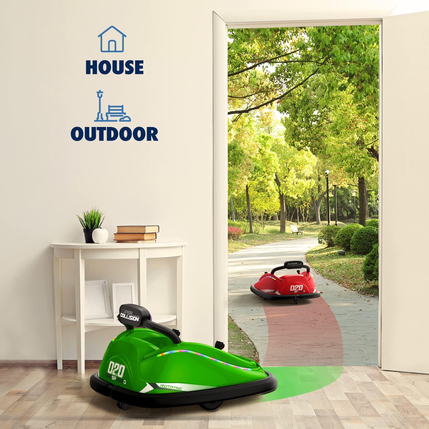 - GIFT FOR BOYS&GIRLS: This bumper car is a perfect addition to interactive and group games. Kids can bump each other for more riding fun. And this bumper vehicle has a music player, LED flashlights, and a horn suitable for kids to ride even at night. It is a perfect gift for boys and girls.