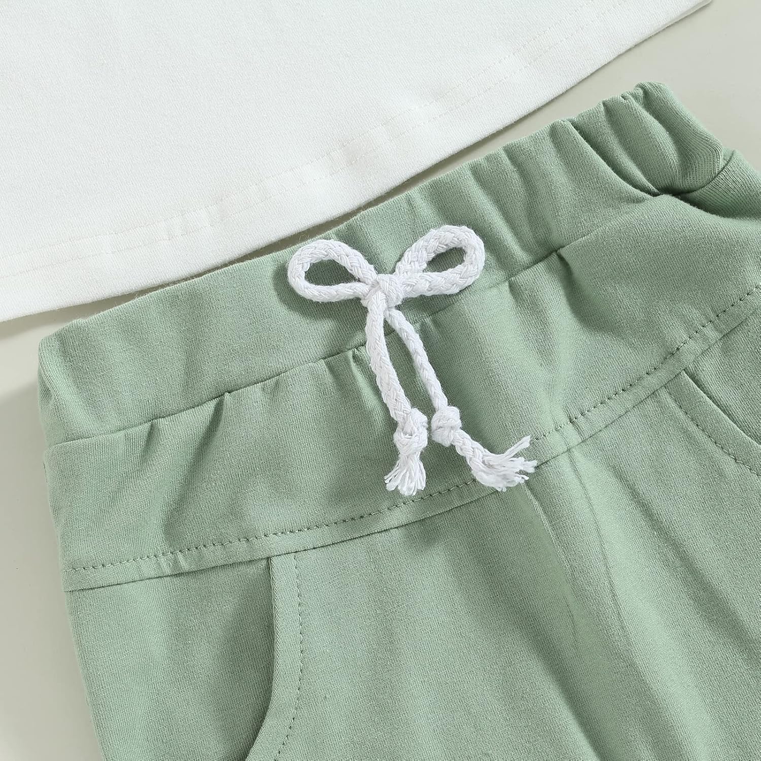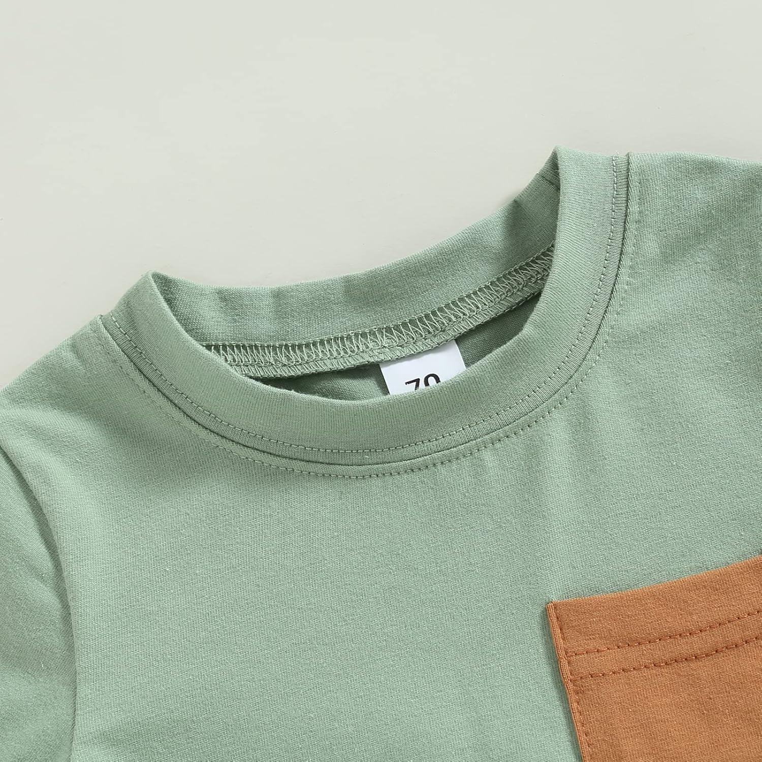 - Relax Crew Neck, One Pocket Front, Striped Pattern, Comfy Short Sleeve T Shirts Tee Tops, Elastic Waist with Drawstring Shorts, Side Pockets, Comfy and Cute Newborn Baby Boys Summer Outfits Clothes