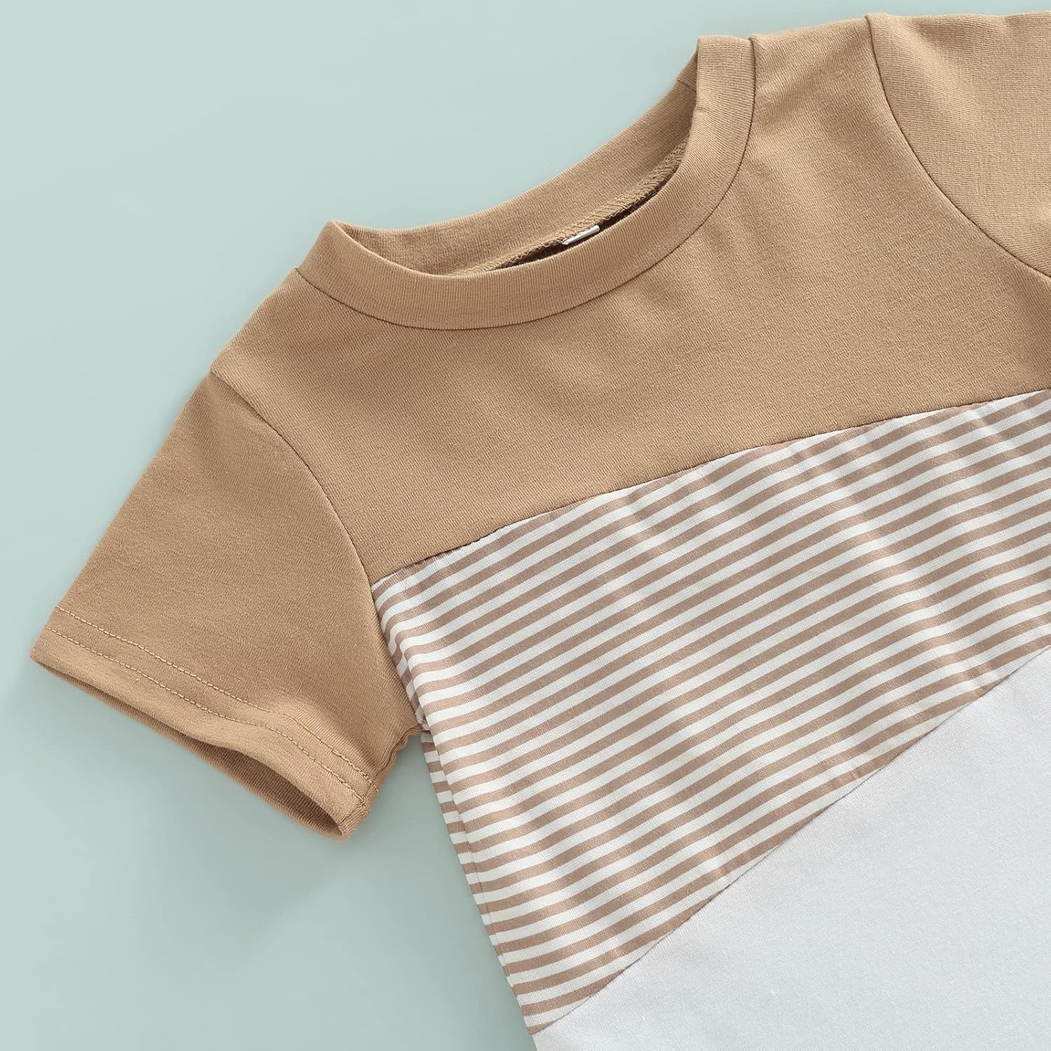 - Relax Crew Neck, One Pocket Front, Striped Pattern, Comfy Short Sleeve T Shirts Tee Tops, Elastic Waist with Drawstring Shorts, Side Pockets, Comfy and Cute Newborn Baby Boys Summer Outfits Clothes, Infant and Toddler Boy Comfy Cotton Shorts Sets
