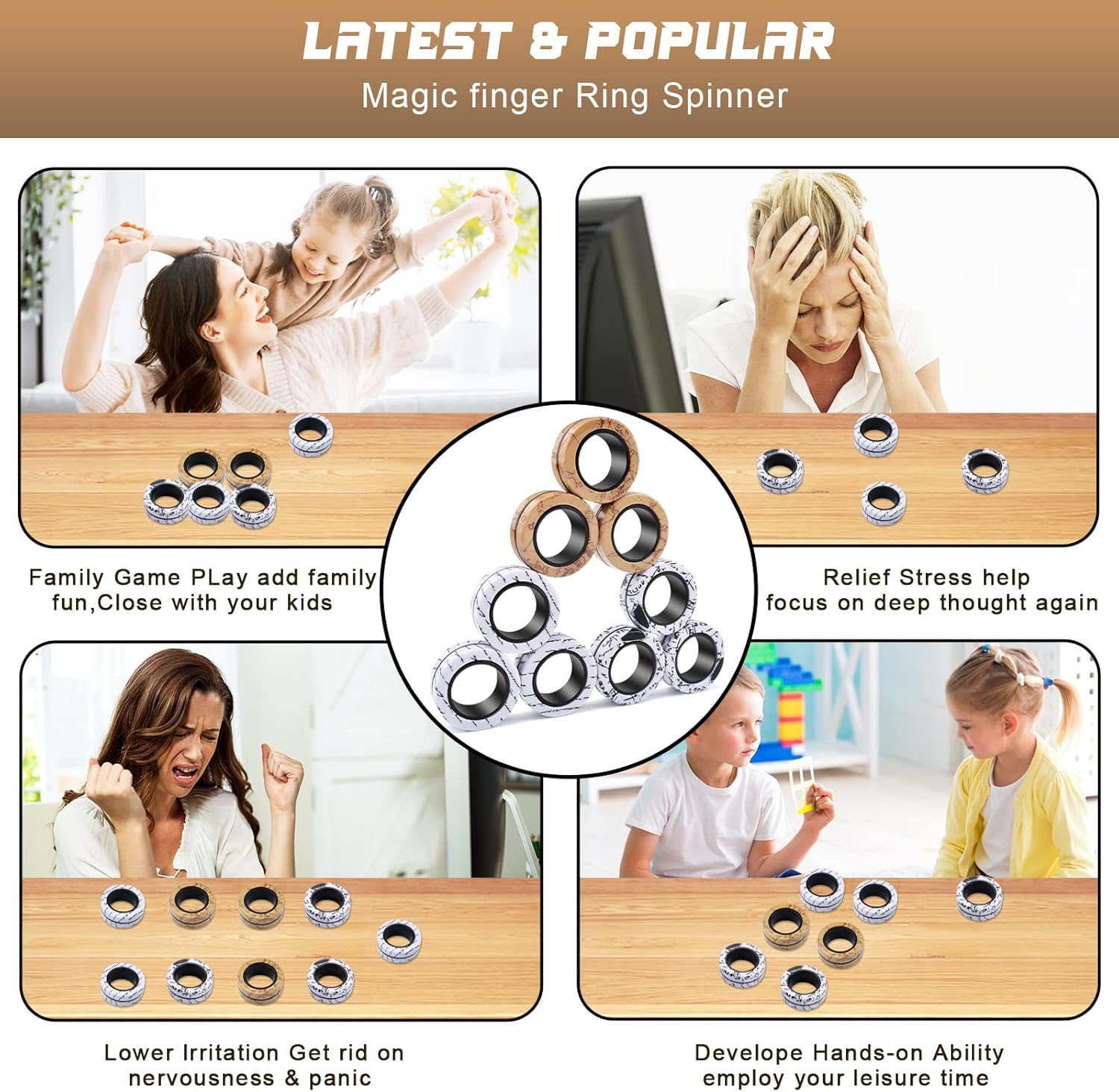 - ANTI-STRESS MAGNETIC SPIN RINGS: Magnetic fidget toys to relieve anxiety, stress, focus. Magnetic finger fidget toys are ideal for Autism, ADHD, or anyone with busy fingers. Plus, magnetic rings toy can help curb unwanted habits like nail biting, smoking