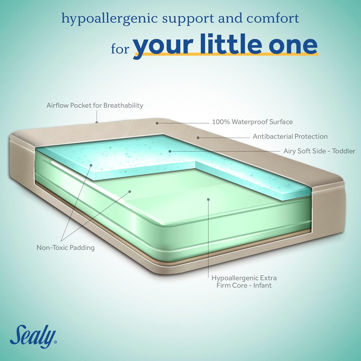 Sealy Baby Orion Antibacterial 2 Stage Breathable Crib Mattress plus Toddler Bed Fit, Lightweight & Waterproof, Non Toxic, GREENGUARD Gold Certified, Safety & Quality Tested, Made in USA, 52x28"