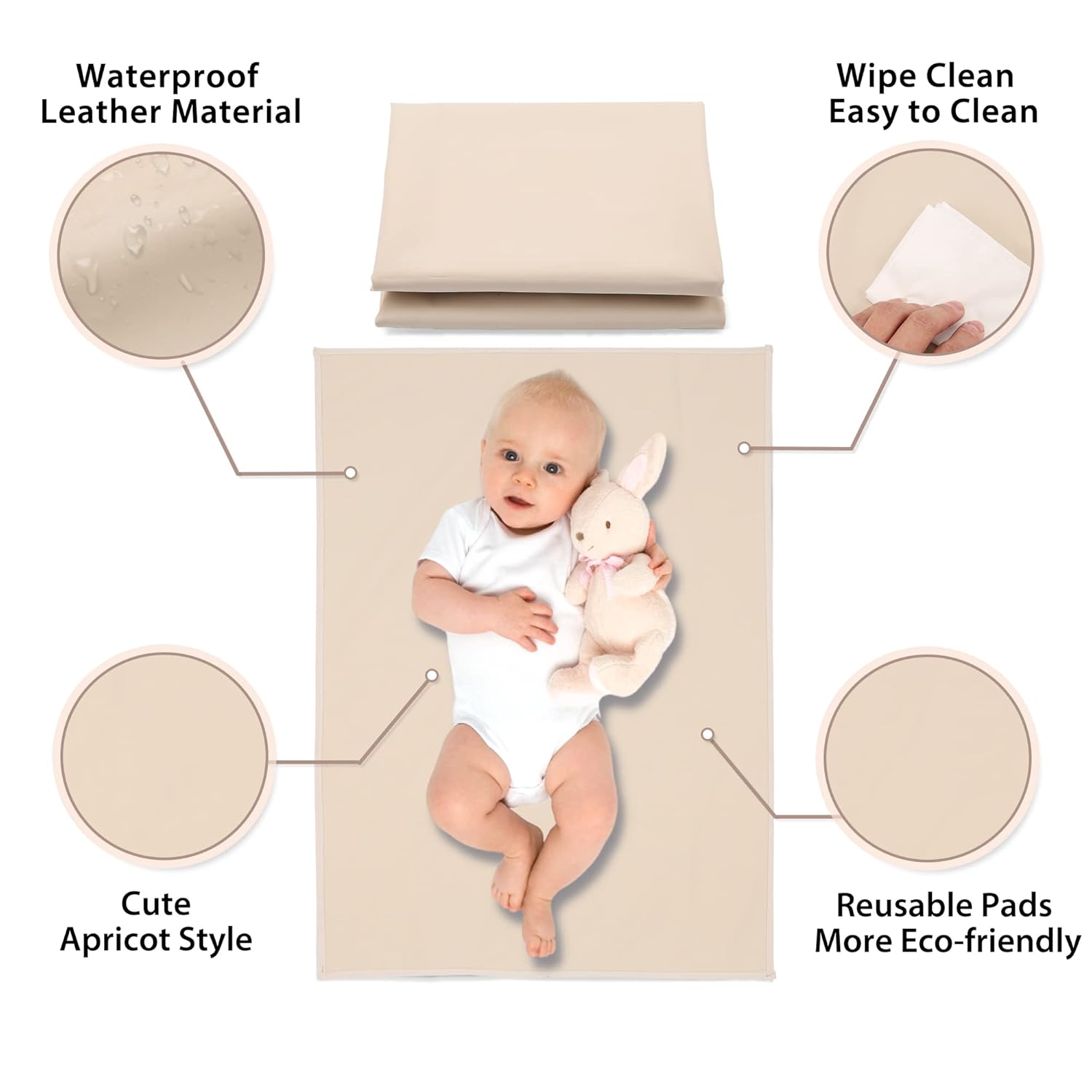 Vegan Leather Baby Changing Mat - Wipeable Portable Changing Pad, Foldable Travel Changing Mat for Baby, Newborns Toddlers Shower Gifts (Apricot,20"*28")