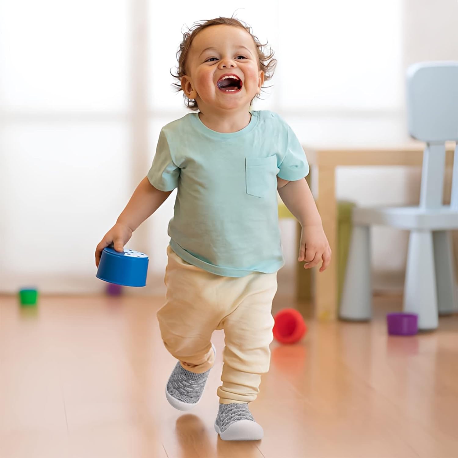 • None-slip:Lightweight sole are made of natural rubber which is flexible and bendable.The concave and convex pattern of the soft sole has good antiskid performance which helps kids get grip and balancewhen when learning to walk.