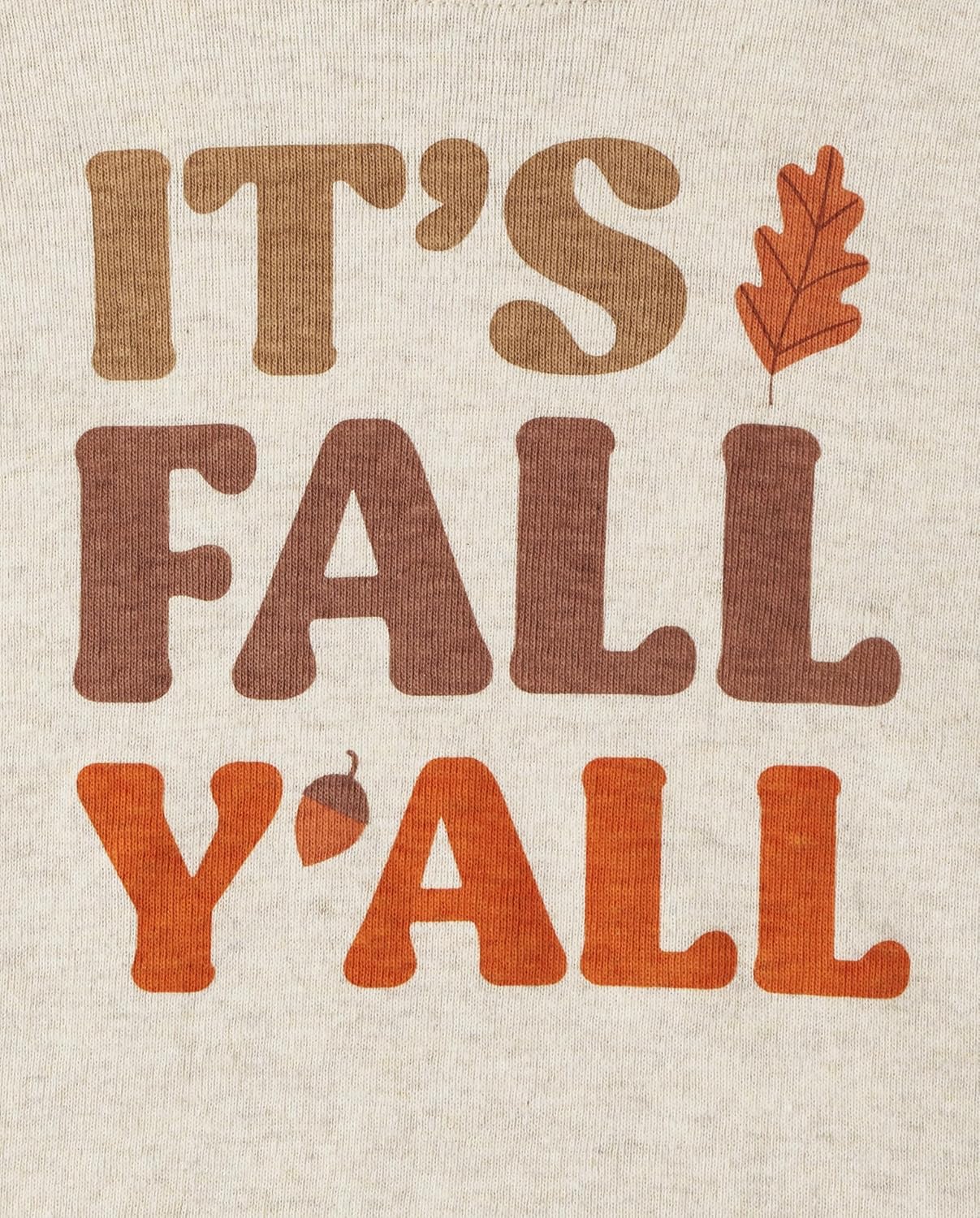 - PAJAMA TOP — Features long sleeves, rib-knit crew neck and sleeve cuffs and 'It's Fall Y'all' graphic design at front