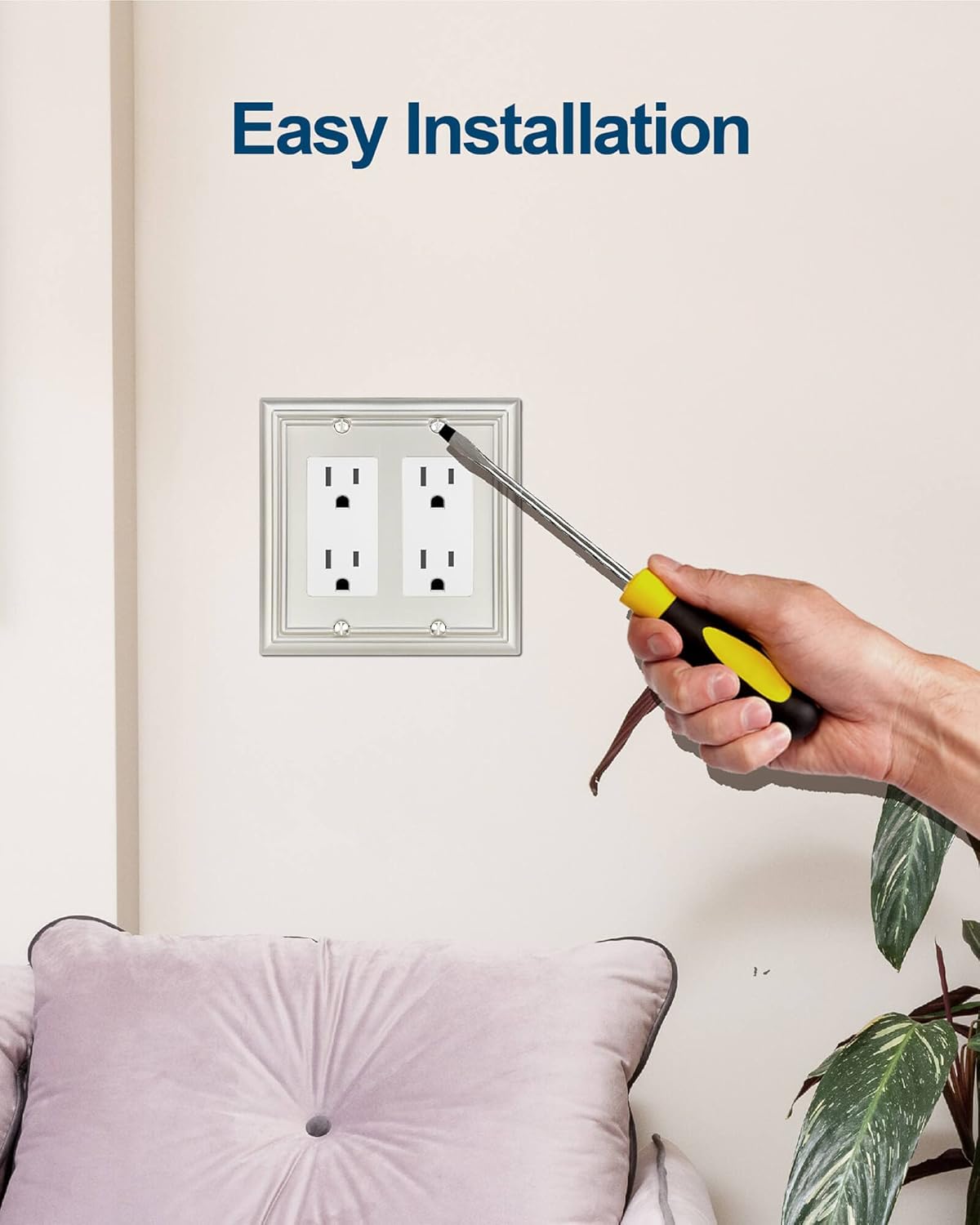 2-Pack Double Decorator Outlet Covers, Satin Nickel Wall Plates for Dimmer Switch, GFCI Outlet and Receptacal, Durable Metal, Midsize