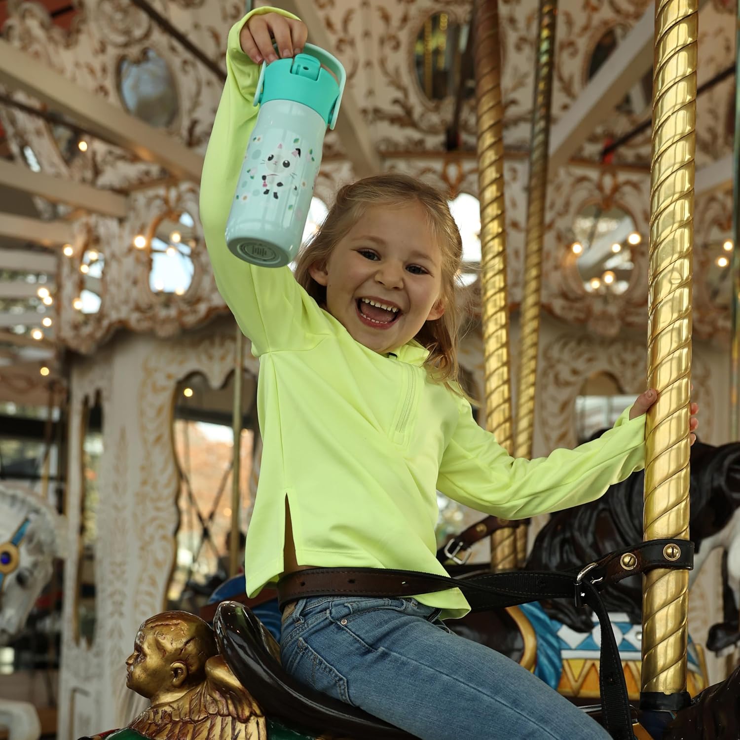 Zak Designs Harmony Gabby's Dollhouse Kid Water Bottle for Travel, 14oz Recycled Stainless Steel, Leak-Proof When Closed and Vacuum Insulated (Pandy Paws, Cakey Cat, Mercat, Kitty Fairy)