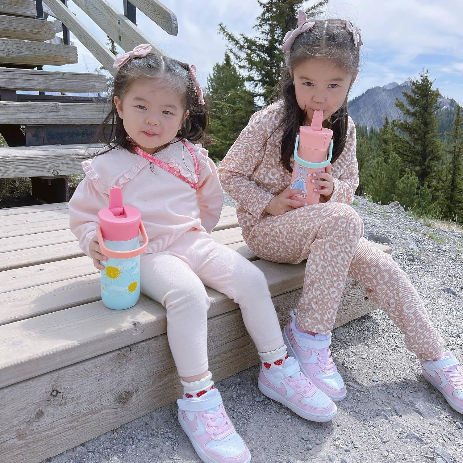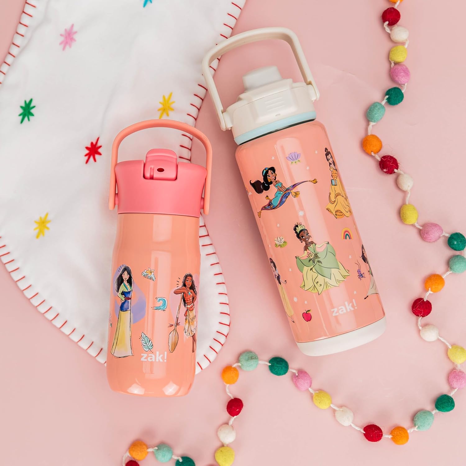 Zak Designs Harmony Disney Princess Kid Water Bottle for Travel or At Home, 14oz Recycled Stainless Steel is Leak-Proof When Closed and Vacuum Insulated (Ariel, Mulan, Moana, Cinderella)