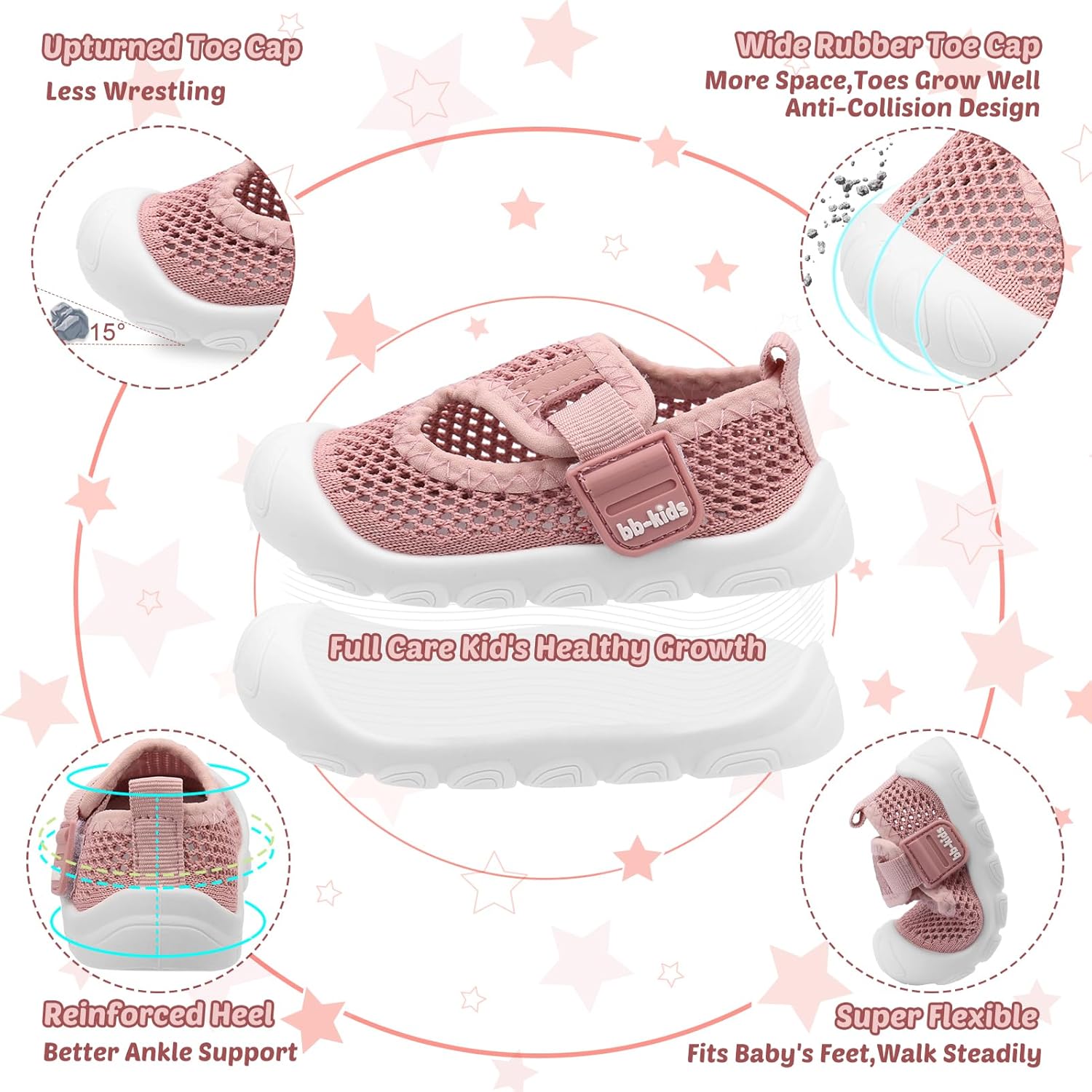 Baby Walking Shoes Toddler Girl Boy Soft Sole Breathable Mesh Slip on Summer Wide Shoes Infant Flexible Lightweight Non-Slip Safer Causal Tennis Shoes Toddler First Walkers Shoes Rubber Soles Outdoor