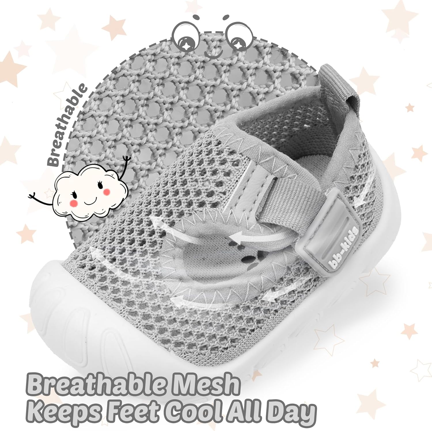 - Breathable Upper: The toddler walking shoes feature a breathable mesh upper that quickly absorbs sweat. Cut-outs enhance the breathability of the baby shoe, ensuring your baby stays fresh all day. Easy to clean and machine washable, making them convenient for busy parents.